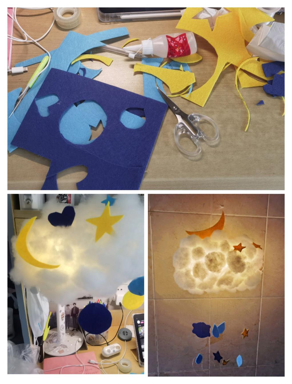 为培养学生认识美、体验美、感受美、欣赏美和创造美的能力,学院推出了“心育”与“美育”相结合的成长辅导沉浸式体验活动——“手作云朵灯”。该活动以宿舍为单位,在选材、绘制、修剪、塑形等环节中同学们静心凝神,发挥想象力和创造力,锻炼了动手实践能力,彰显了和谐的宿舍氛围。英语201吴雅南分享道:“完成后的云朵灯静谧的浮在夜空,美丽、温暖而梦幻,在宿舍里柔和的灯光治愈心灵、照亮同一个梦。”