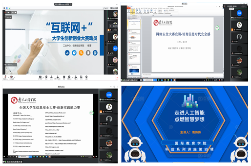 工业中心的耿冉冉、朱节云、杨雪三位老师,结合学校为大学生科创赛事做专题培训指导,增强了同学们对“互联网+”“挑战杯”等创新创业赛事的了解,解答了同学们在参加科创比赛中的疑惑;计算机工程学院的施炎峰老师以“网络安全大赛宣讲——培育信息时代安全感”为主题,宣传普及了网络安全知识,提高了同学们网络安全创新意识;南京航空航天大学的袁伟伟教授,为大家带来关于数据智能的讲座,加强了同学们对数据智能的了解,激发了大家对该领域的创新实践、研究探索的热情。