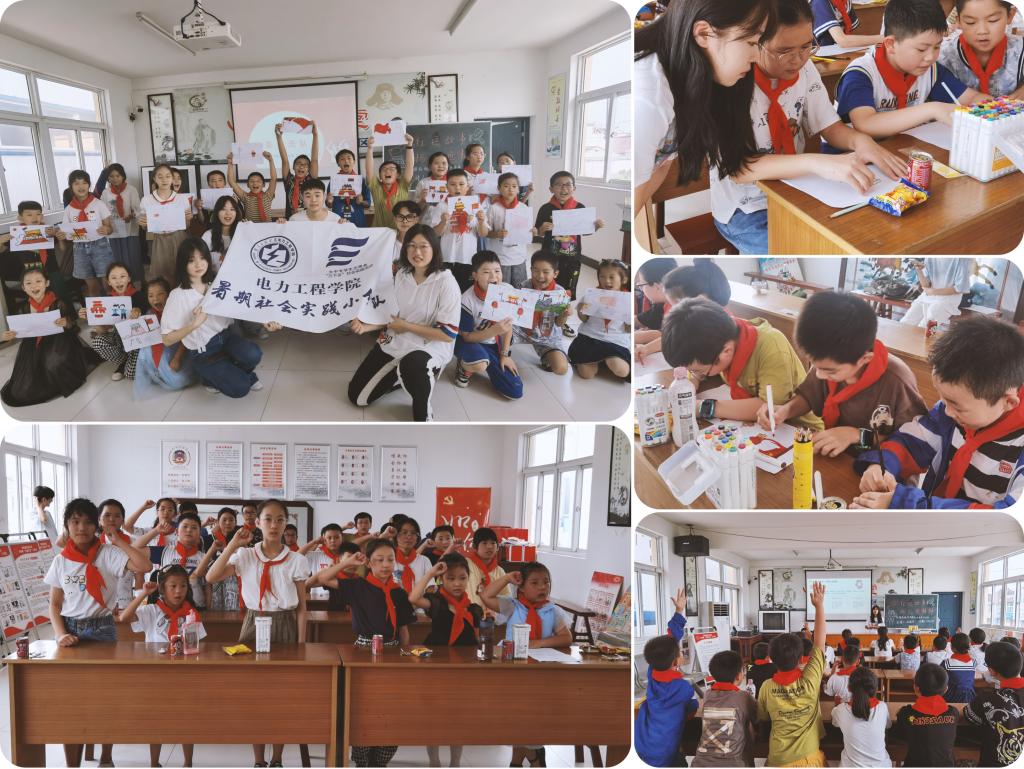 “如何成为一名优秀的少先队员?”紧接着的“我是少先队员”的环节中,队员们在“知识”“生活”“意志”方面与在场小学生们互动交流、高声宣誓。最后,在“绘梦·红色印象”环节中,实践团成员携手小朋友们一起用水彩绘制心中的红色印象,小朋友们积极动脑,在空白的纸上画下了五星红旗、天安门、万里长征等他们心中的红色印象。“感谢大哥哥大姐姐们安排的暑期学习活动,让课本上的故事变得鲜活了起来,我也明白只有好好学习才能做品德高尚的少先队员。”在场一位小朋友开心的说道。“情感的共鸣触动了小朋友们那颗爱国之心,或许他们还不能理解‘敢叫日月换新天,为有牺牲多壮志’的豪情壮志,但我们通过‘沉浸式+体验式+互动式+贯穿式’四式活动安排,希望能将红色教育‘活’起来,让弟弟妹妹们能真切的感受到先烈们为了革命而做出的巨大贡献。”实践团成员在活动结束后讲述了活动初心。