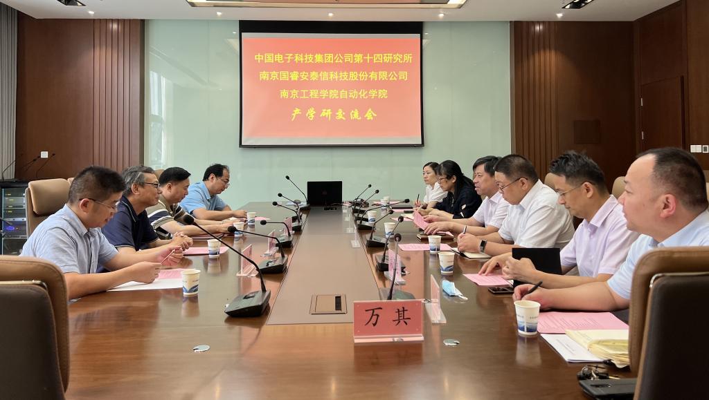 自动化学院、先进工业技术研究院、江苏省机器人与系统集成创新平台、十四所工艺研究室、南京国睿安泰信科技股份有限公司相关人员参加交流会。