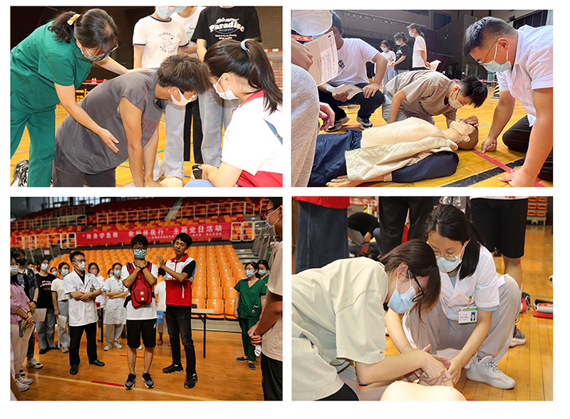 为了保证人人上手,人人学会,医务人员和红十字会志愿者一对一指导学生,对胸外心脏按压、清理口腔异物、开放气道、人工呼吸、按压深度、按压频率等操作要领流程逐一进行讲解和示范,反复强调操作要点,同学们在老师指导下对各个操作要领和流程进行操作演练,并相互学习和探讨,现场学习氛围浓厚。