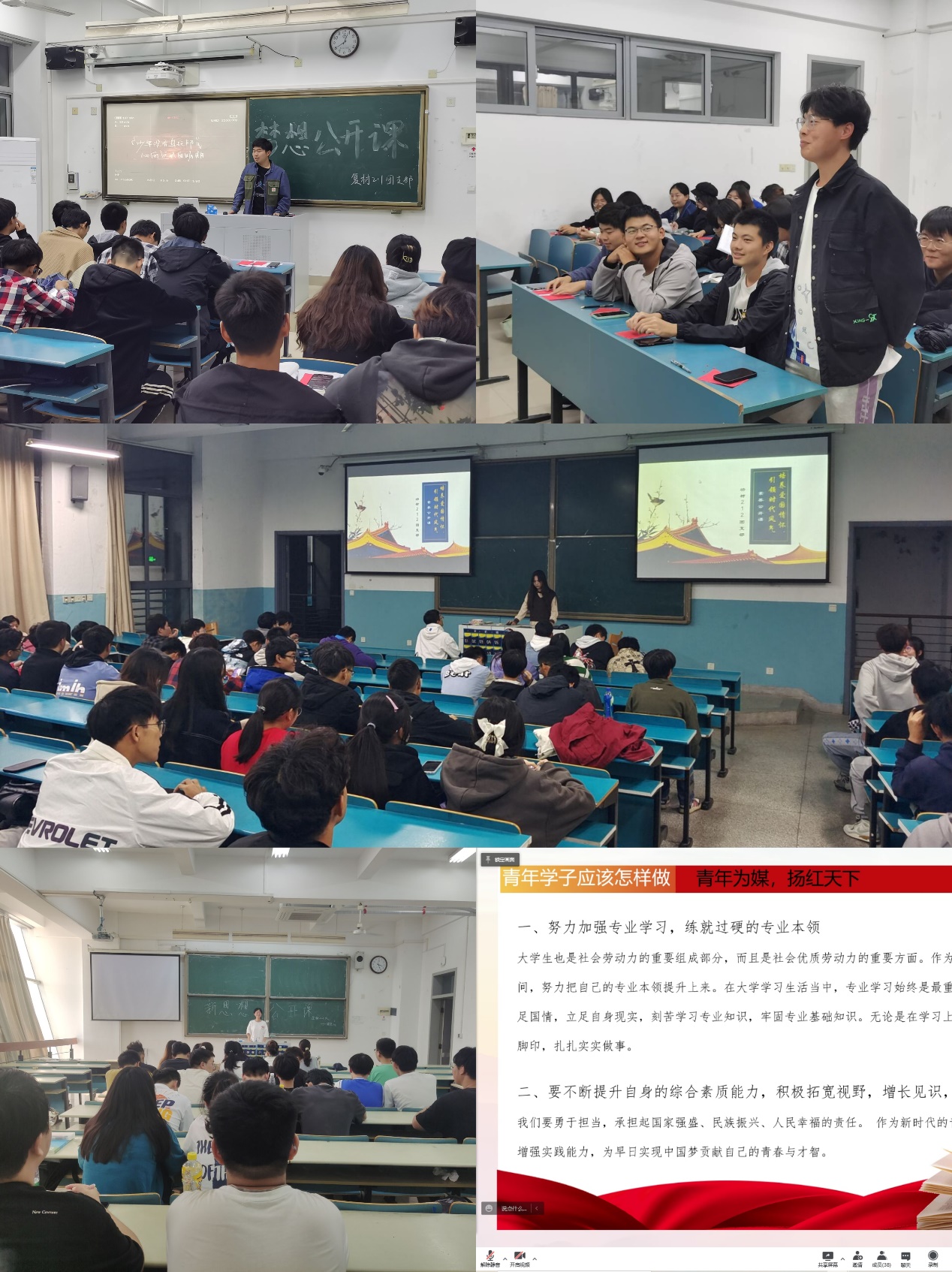 成型202班团支部邀请李振红老师为支部成员开展了一次别开生面的“新思想公开课”。李老师以“理想信念是方向、是灯塔,是干事创业的不竭动力”号召支部团员,在回顾革命年代里打响的一场场艰苦卓绝的战役中坚定理想信念,珍惜来之不易的生活,走好新时代的长征路。复材212班团支部围绕四个“梦”——“载人航天梦”“伟大的中国梦”“禾下乘凉梦”“少年梦,我的梦”开展了“梦想公开课”。支部成员一同观看了我国载人航天史与袁隆平的水稻杂交纪录片,逐一分享了自己的青春故事,以其生动实践响亮发出“青年好声音”。功材212班以“培养爱国情怀,引领时代风气”为主题开展了一次灵魂建设的“素养公开课”。团课以“当代青年大学生的青春之问”为话题,从“如何树立正确的人生观”“如何创造有意义的人生”两方面开展了一场大讨论,引导团员们通过诵先贤、诵英雄、诵模范,鼓励青年爱国、励志,忠诚坚定,奋发图强;通过学历史、学传统、学礼仪,鼓励青年诚信、明礼,信守承诺,抱诚守真;通过传文明、传精神、传理想,鼓励青年友善、文明,谦和好礼,诚恳待人。