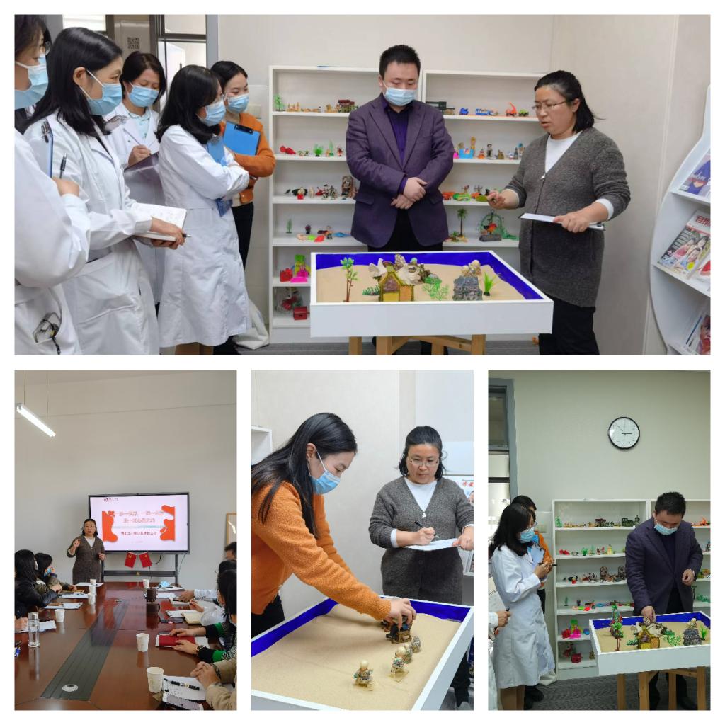 在门诊部二楼教职工健康驿站214心理咨询室,朱老师从理论上介绍沙盘游戏治疗法诞生的背景、适用领域及作用原理以及“沙盘治疗师”工作的流程规范及注意事项,并以现场两名老师志愿模拟“来访者”进行沙盘摆放为例,全程示范了利用沙盘游戏帮助来访者进行心理探索的治疗过程。从沙盘的准备到过程的记录,从对“来访者”的询问到通过沙盘引导“来访者”进行深入的自我探索......教者倾囊相授,耐心解答;学者用心聆听,用心体验。