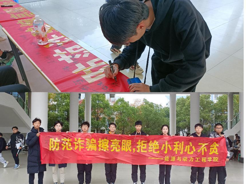 为全面提升学生自我安全防护能力,引导学生树立正确的安全观,切实遏制高校电信网络诈骗案件蔓延势头,提升学生的安全感与幸福感,10月-11月,能源与动力工程学院以“你我同心,反诈同行”为主题开展防范电信网络诈骗主题宣传月活动。