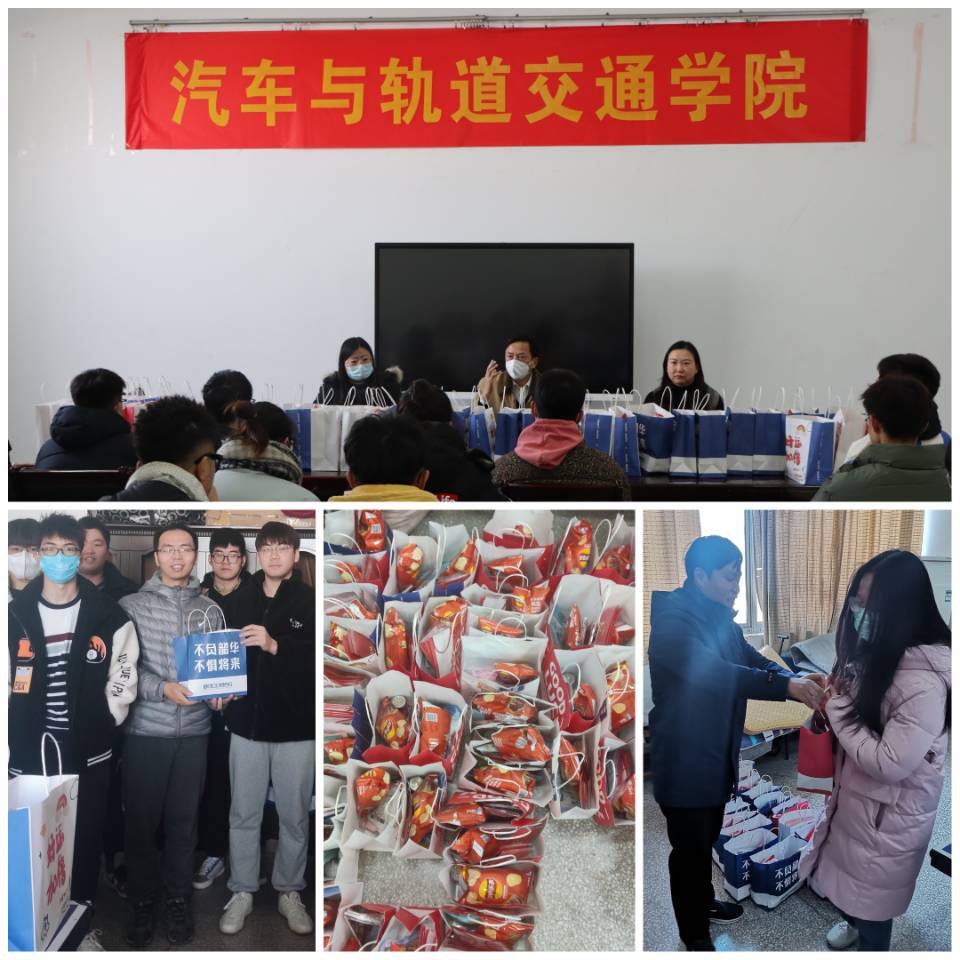 为帮助考研学子增强备考信心,以良好心态参加考研,近日,汽车与轨道交通学院党政负责人、关工委老教师、毕业班班主任、辅导员等全员参与“考研送温暖”活动,为全院210余名大四考研学子发送考研加油礼包,表达了学院对考研学子的关心和慰问。