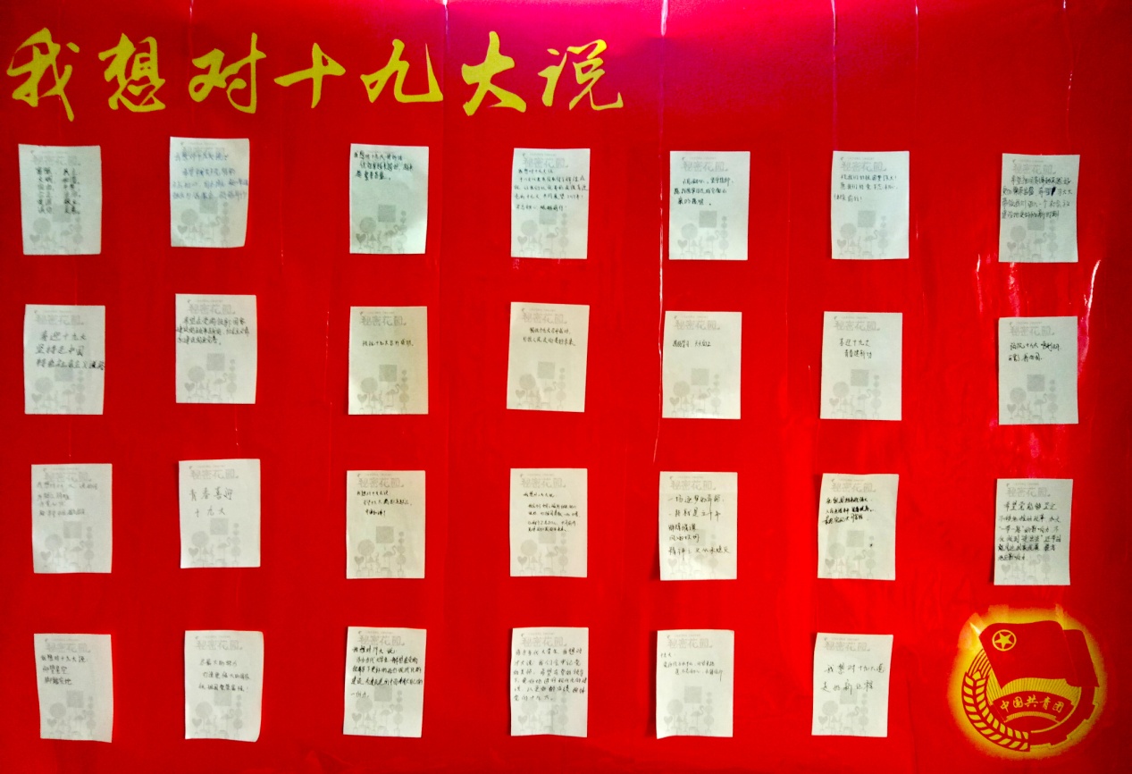 环境152、电环171、水质171等团支部共同发起“心系十九大•心语心愿”活动,话题一经发出,就引发了广大团员的热烈讨论和广泛参与,青年学生们在心愿墙上写下对党的祝福、对党的十九大的祝贺。环境152团支书席肖同学这样写道:“习近平总书记讲到我们进入新时代的话语鼓舞人心,心中的国家自豪感无比高涨,我为中国骄傲。”100多名青年学生以书写祝福的形式,用心写下对祖国母亲、对党的祝福和对自己成才发展的规划,把自己的个人发展与国家发展变化相结合,深情歌颂共产党,以实际行动迎接新时代,祝福十九大。
