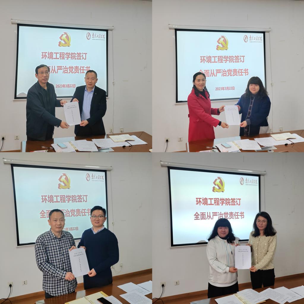 会上,学院中层副职、科级干部、系(实验中心)主任和党支部书记分别与相关负责人签署了《环境工程学院2023年全面从严治党责任书》。