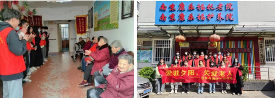 部分党员、团员学生走进南京康乐福托老院去看望老人,为他们表演节目、打扫卫生、谈心聊天等,给老人们送去温暖和爱心。通信205班周瑜同学感慨道,我们做的事情虽小,但意义重大。即便是看起来不起眼的小事,积少成多,也可汇成了不起的成就。