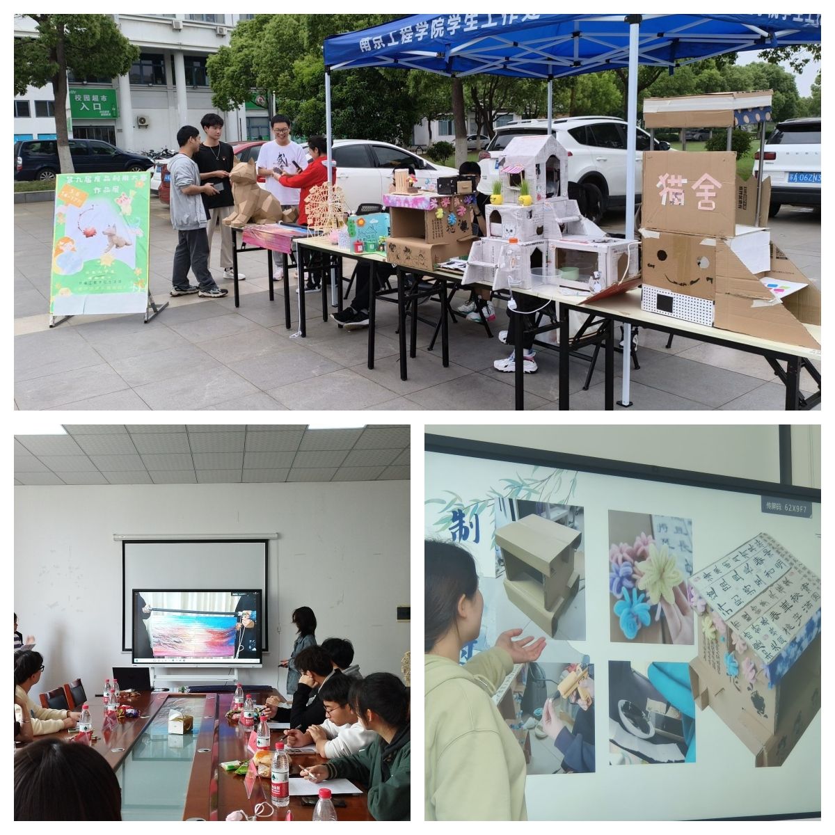 本次大赛由校团委主办,旨在提高学生合理利用资源、变废为宝的环保意识,鼓励同学们使用日常生活中随处可见的塑料瓶、快递盒、外卖盒等物品作为原材料,用一点巧思、一份创意给这些物品赋予新的生命。经过层层选拔,最终有20支团队及个人进入决赛展示环节。经评比,机械工程学院的李林印同学以纸为素材制作狗型立体纸模,对废纸箱进行华丽变身,夺得大赛桂冠;艺术与设计学院的陈若漪同学以养乐多瓶为材料,以莲花为主体制成南京地区的代表性民间艺术之一——花灯,在响应环保号召的同时传承中华传统手工文化,获评本次大赛的最佳设计作品。