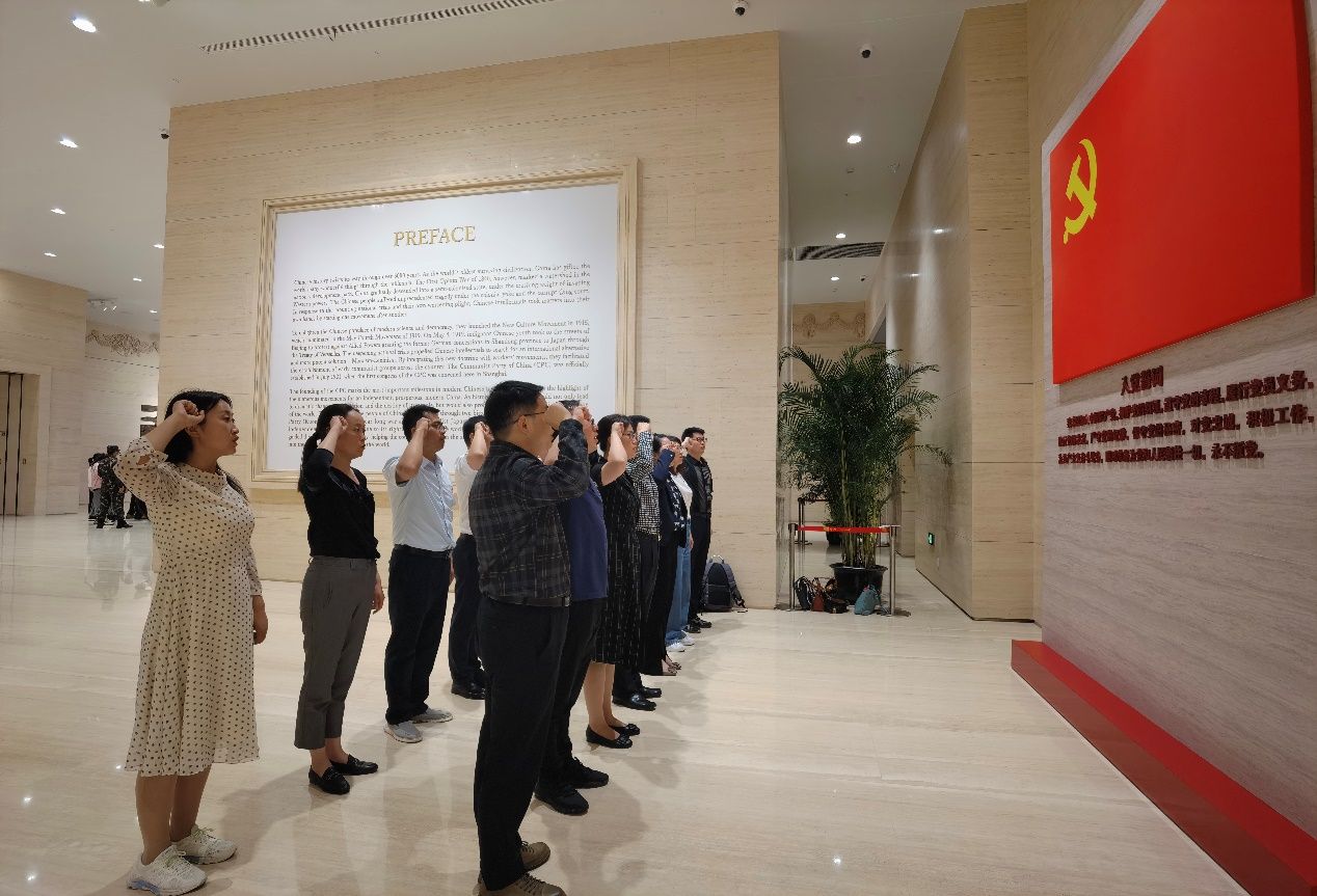 “我们走得再远都不能忘记来时的路。”中共一大会址是中国共产党的梦想起航之所,走进《伟大的开端——中国共产党创建历史陈列》展厅,一件件珍贵的革命文物、一份份厚重的历史资料、一个个复原的历史场景,都生动地再现了中国共产党由小到大、由弱到强,带领着人民艰苦奋斗,砥砺前行,共筑中华民族伟大复兴中国梦的光辉历程,让党员同志们心潮澎湃。在百年接续奋斗中,一代又一代中国共产党人铸就了一系列伟大精神,构筑起中国共产党人的精神谱系,成为激励全党全国各族人民不断攻坚克难、从胜利走向胜利的强大精神动力。“我们要继续弘扬光荣传统、赓续红色血脉,永远把以伟大建党精神为源头的中国共产党人精神谱系继承下去、发扬光大!”党员同志们深受感染。
