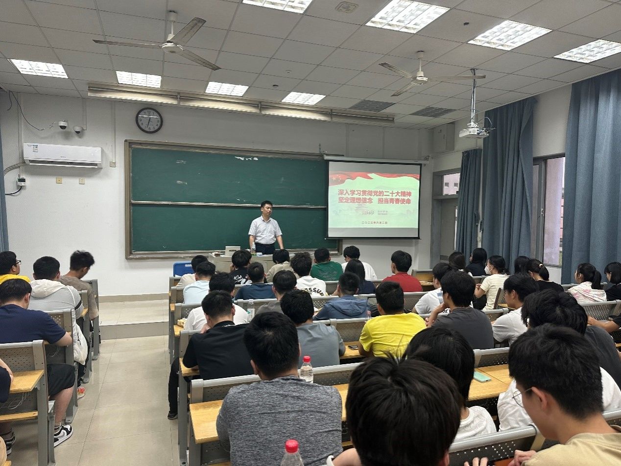 为持续学习贯彻习近平新时代中国特色社会主义思想主题教育,切实提升立德树人成效,6月2日,校党委常委、党委宣传部部长陈建华以“坚定理想信念 担当青春使命——深入学习贯彻党的二十大精神”为题在教学楼东A102讲授主题教育专题党课。汽车与轨道交通学院汽车222班、电力工程学院电力202班全体同学,部分教师党员、入党积极分子一起聆听了党课。