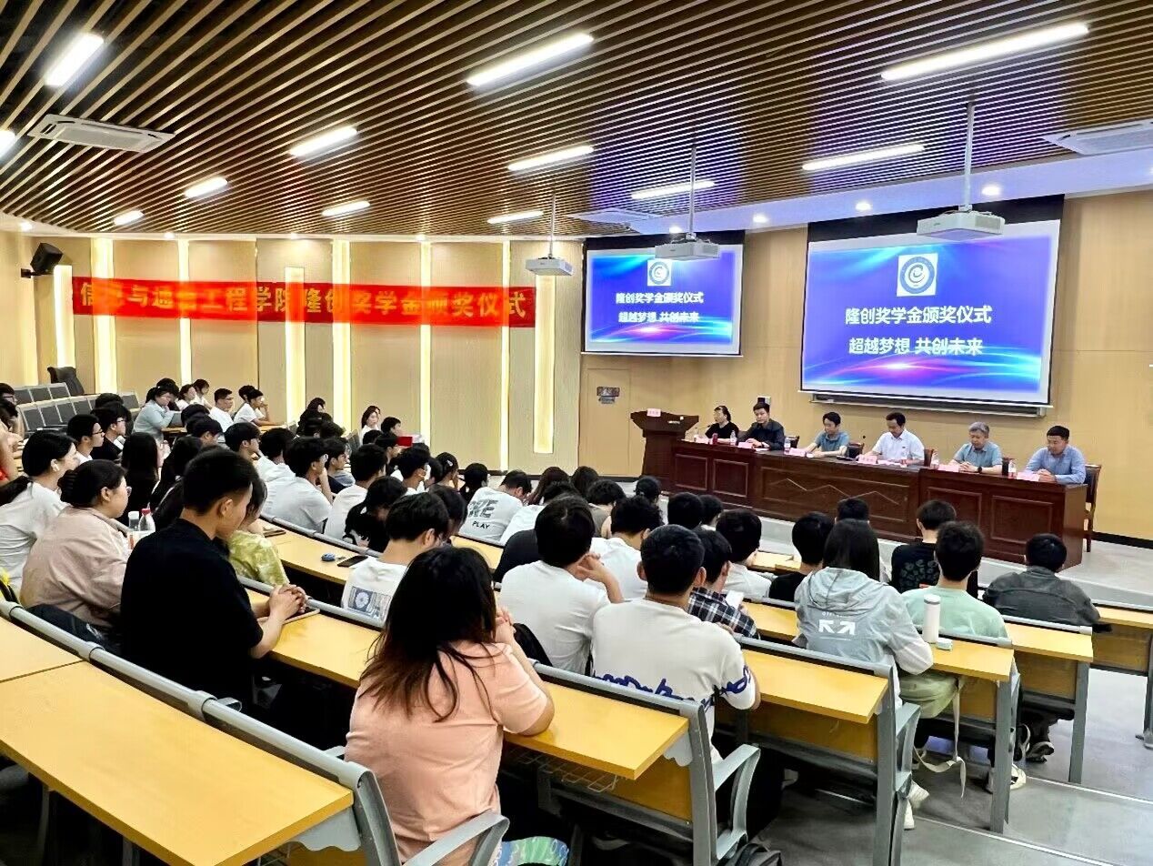 为加强与企业在人才培养等方面的合作,激励学生勤勉学习、全面发展,6月13日,信息与通信工程学院“隆创奖学金”颁奖仪式在信息楼B103举行。隆创信息有限公司总经理胡俊丰、副总经理张烜之、解决方案专家徐光达,校信息化建设与管处处长陈立受邀出席。学院党委书记章启成、获奖学生、优秀学生代表、辅导员参加了活动,活动由该院党委副书记卢娜主持。