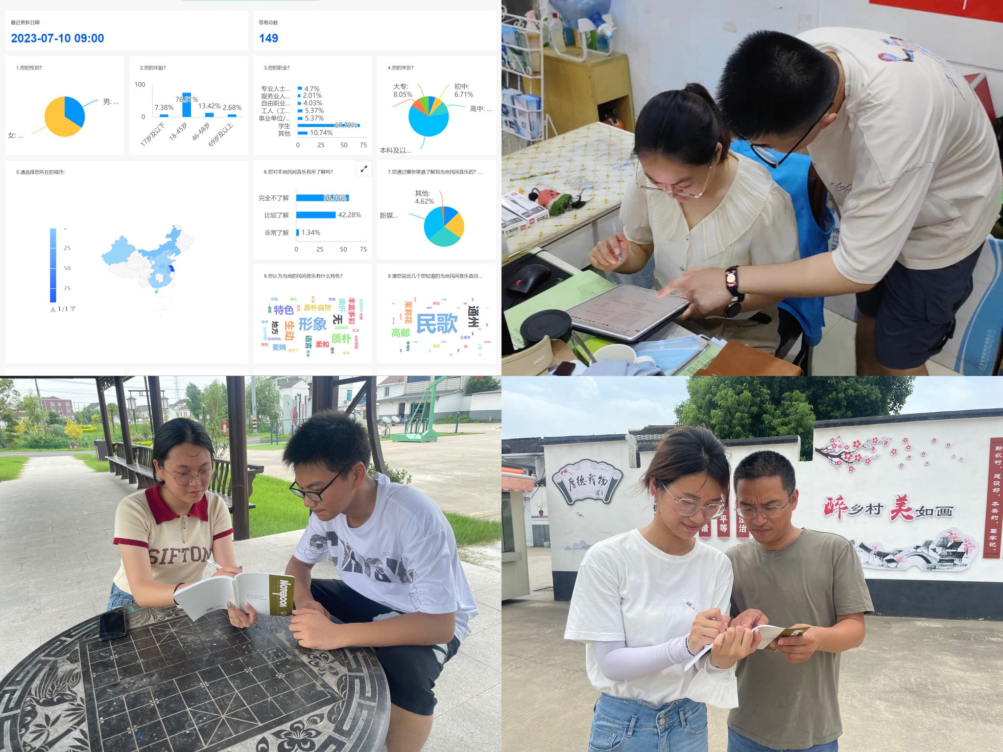 发布调查问卷,调研民乐传承。为了更全面、准确地掌握大众对无锡民族民间音乐的了解情况、探究无锡民乐传承的主要方式,实践队采用线上与线下相结合的方式,结合查阅资料设计了三类不同的问卷,分别面向普通民众、民乐的传承者和学习者、未来担负着传承和保护无锡民乐使命的青年学生群体,从不同的角度、不同的层次,通过不同的媒介掌握当下无锡民乐传播与普及的情况。“在西方音乐和新媒体艺术的冲击下,无锡民族民间音乐的传承和发展不容乐观,但在调研过程中,我们依然发现一批保护和传承无锡民间音乐的艺人在各自艺术领域内的坚守。”软件工程212班谢戴鑫有感而发道,调研团队通过调查问卷探索民族民间音乐在新媒体时代视角下发展与传播的现状,并就存在的问题、面临的传播困境进行分析研究以便提出相应的解决对策。