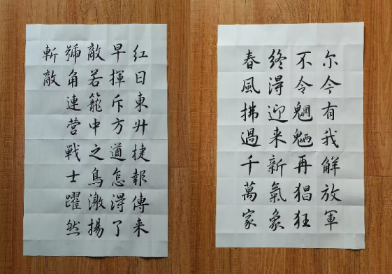 参观结束后,同学们感悟先辈红色精神,体会到今天的幸福生活来之不易,纷纷将胸中感动化于笔端,创作了多篇红色诗词。网络工程211班戴君豪同学在观看了新四军战士吹响号角的雕塑后创作了《清平乐·游新四军苏北指挥部》:“红日东升,捷报传来早。挥斥方遒怎得了,敌若笼中之鸟。激扬号角连营,战士跃然斩敌。”网络工程211班王屹程同学在观看了淮海战役的纪录片后创作了《七律·淮海战役》:“尔今有我解放军,不令魍魉再猖狂。终得迎来新气象,春风拂过千万家。”