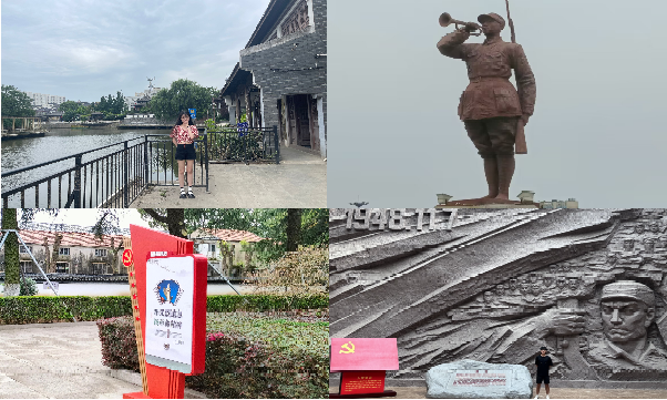 在新四军苏北指挥部旧址,同学们通过展厅中的珍贵文物和历史资料,看到侵华日军在苏北地区犯下的种种罪行,也看到了苏北人民奋起反抗的英勇事迹,新四军团结群众,经过危险艰苦的斗争带领苏北人民坚守阵地,最终迎来了抗日战争的最终胜利;在淮海战役纪念碑前,同学们不仅为纪念塔的高大宏伟所震撼,更被先烈们的浴血奋战所感动,淮海战役的伟大胜利对于全国解放战争战局的发展产生了重要的影响,但是这一胜利的取得是极其不易。在条件相差悬殊的情况下,解放军展示以气吞山河的气概、坚韧不拔的毅力、机动灵活的战略战术,夺取了淮海战役的伟大胜利。