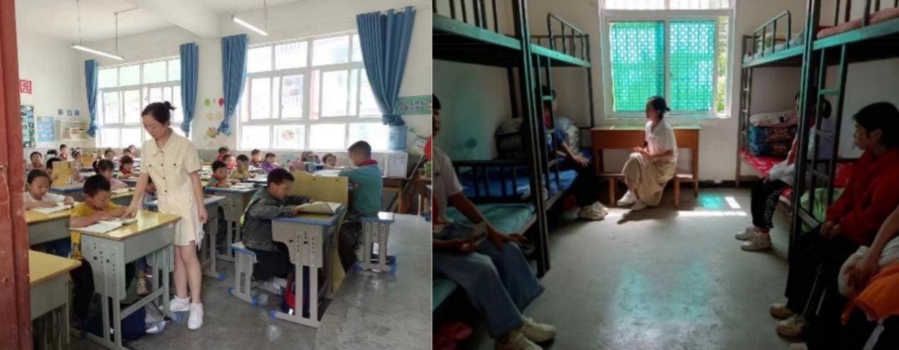在此过程中,团队成员不仅在课堂上与同学们共同学习,更化身“助理班主任”承担起同学们生活知心伙伴的角色。他们进入学生宿舍了解同学们的生活情况,尽己所能解决大家在生活上的困难,鼓励大家以坚定信心迎接每一天的学习和挑战。在支教活动的尾声,团队成员带领小朋友们走出教室、走进绿水青山开展了一堂生动的户外研学活动。“在中华民族大家庭中,大家只有像石榴籽一样紧紧抱在一起,手足相亲,守望相助,才能实现民族复兴的伟大梦想,民族团结进步之花才能长盛不衰。”