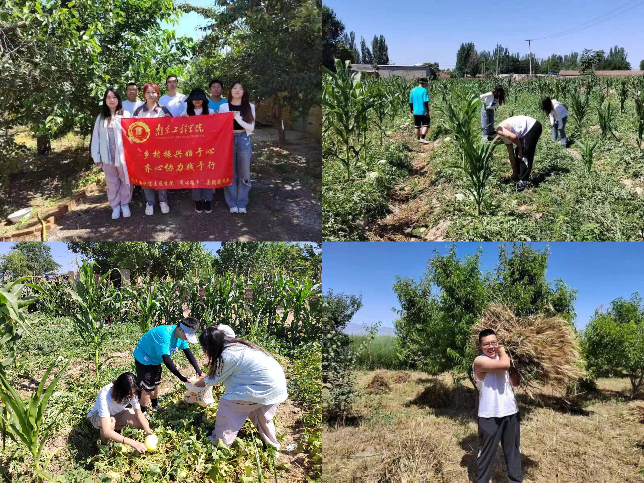 青春助农,书写担当。炎炎夏日,团队成员走进西夏区芦花乡开展助农实践和调研活动,为乡村振兴贡献青春力量。正是瓜果成熟的季节,同学们走进田间地头,深入了解瓜果的种植条件和采摘流程,对其种植、养护、采摘等不同阶段周期的知识进行了简单学习。当看到当地村民纷纷在田间劳作,同学们立即卷起衣袖深入田间帮助采摘瓜果,力气大的男同学更是在村民的指导下搬运起粮草。采摘现场,笑语连连,热火朝天。