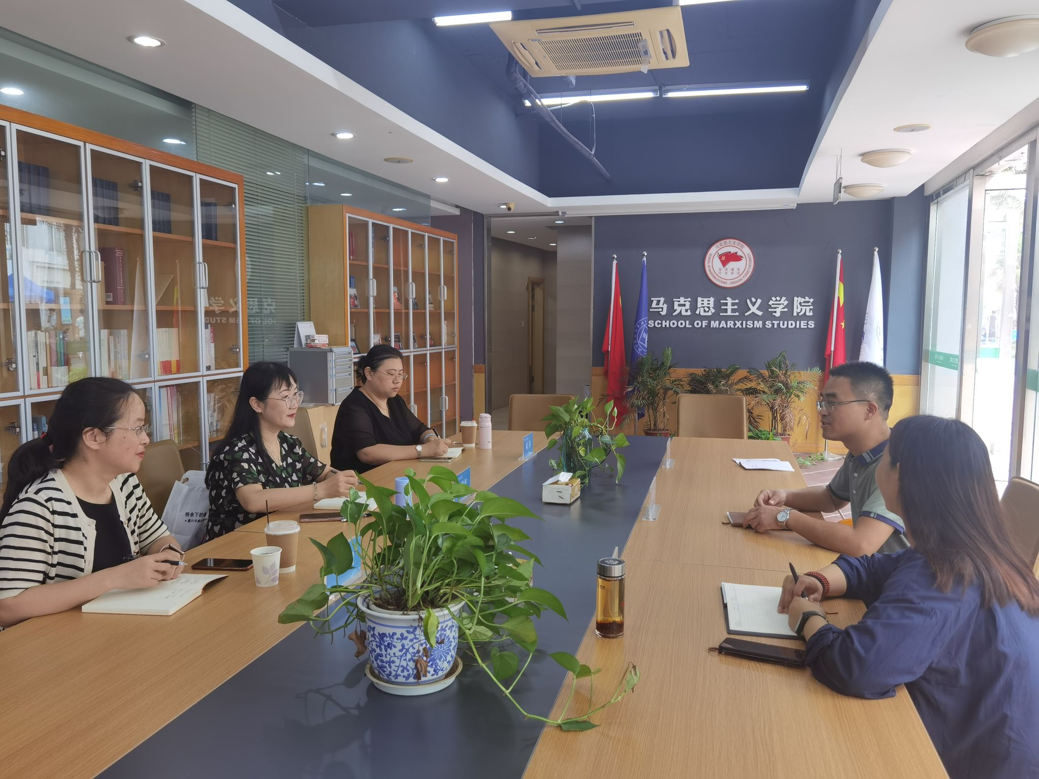 走访交流,深化调查研究。王晓红带队走访了浙江越秀外国语学院马克思主义学院,她介绍了学院的办学历史、机构设置、师资队伍、学科建设等情况,并分享了学院在审核评估工作中的经验和做法。双方围绕师资队伍、人才引进、人才培养、科学研究、思政课的实践教学环节、课程设置、集体备课、云班课等方面进行了深入研讨和交流。通过此次走访调研,不仅有效拓展了学院工作的新视野,激发了思政育人的新思考,为学院未来各项工作的推进,带来更宽广的视野和更丰富的思路。