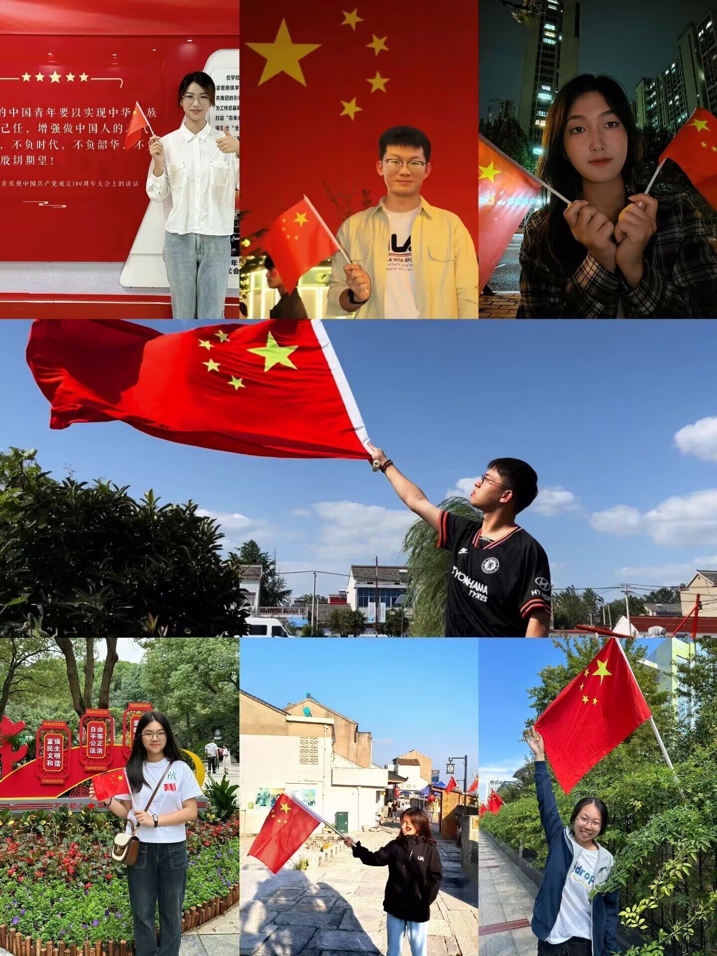 我和国旗合个影,致敬最美中国红。国庆期间,为引领广大学子同向同行,营造庄严喜庆的浓厚氛围,计算机工程学院开展“我与国旗合个影,致敬最美中国红”庆国庆主题作品征集活动。同学们纷纷拿起手中的相机、手机,定格与国旗合影的瞬间,纷纷晒出身边的中国红,表达对伟大祖国的真挚感情和美好祝福,活动共收获了20余部微视频和100余部照片作品。一幅幅充满创意的照片、一张张洋溢着笑容的脸庞、一个个正能量满满的画面,汇聚起爱国主义的硬核力量。此次活动受到了该院同学们的热烈反应,不仅是一次爱国主义教育的有力举措,也是该院青年学子良好精神面貌的展示。参加活动的同学纷纷表示,今后要以更加昂扬的精神状态,用实际行动为祖国母亲送出最美好的祝福,传递一个共同的声音“我爱你,中国”!
