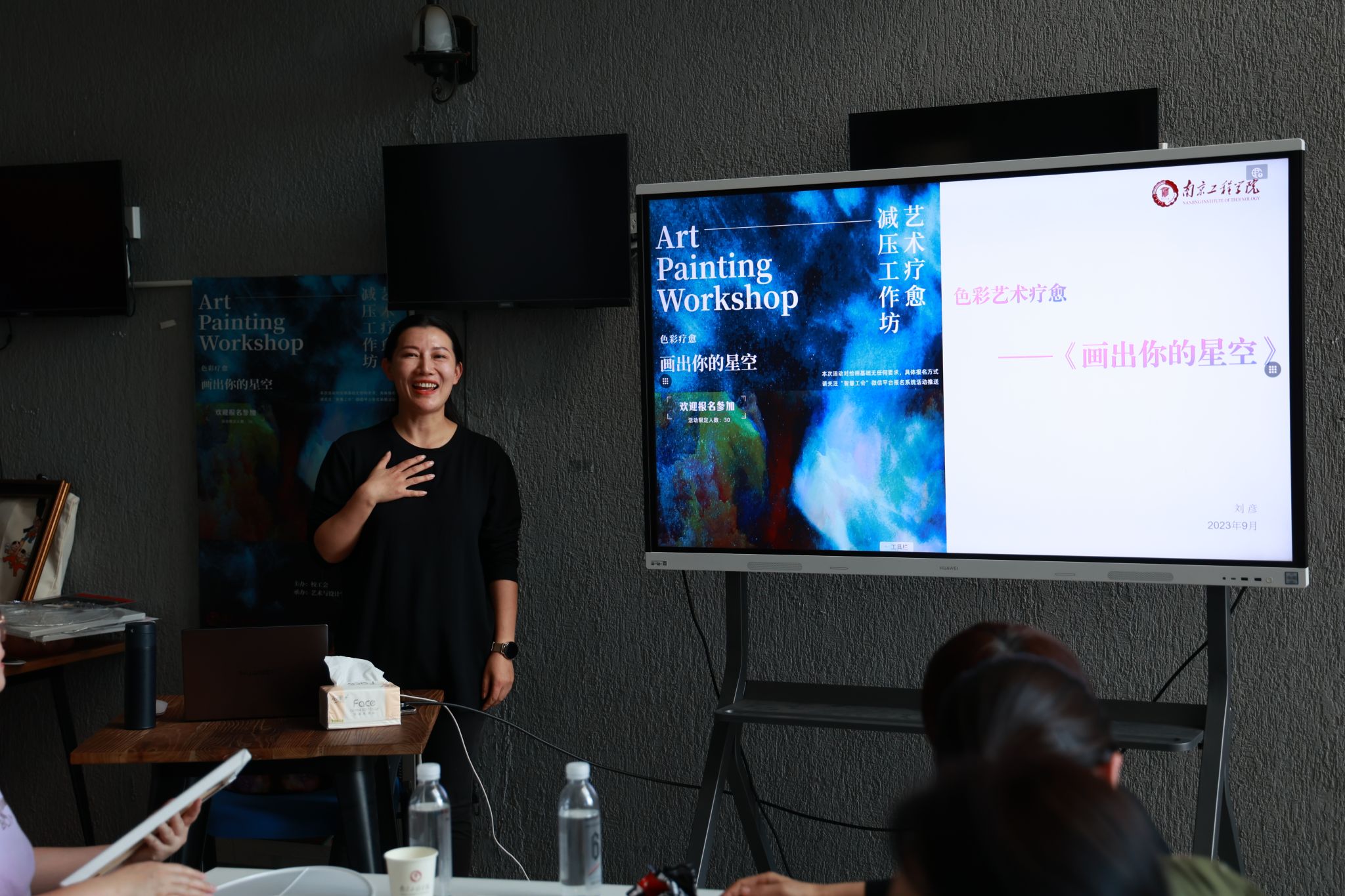 在本次活动中,主讲老师刘彦以“色彩疗愈:画出你的星空”为主题,深入浅出地探讨了色彩心理学的奥妙,使老师们更深入地理解不同颜色对情绪的潜在影响。她还介绍了色彩的艺术疗愈作用,引导教职工们去感知色彩之美,学会运用色彩审美来调节情绪、缓解压力,绘制美好画面。