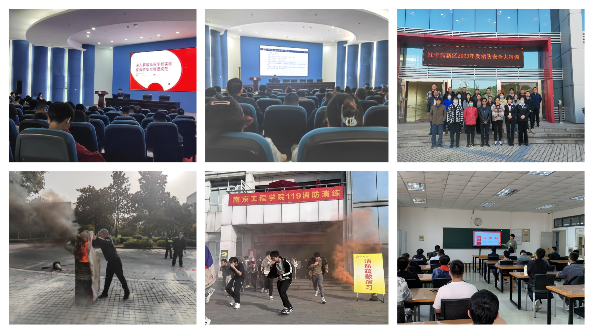 保卫处邀请江宁区消防救援大队严丹举办有关实验室消防安全的专题讲座,从实验室消防安全管理规范的背景和意义、实验室消防安全基本要求、实验室消防安全管理的实施与监督及典型案例分析等方面进行了深入浅出的讲解;开展消防安全教育主题班会活动,签订《15vip太阳集团官网学生消防安全承诺书》,帮助同学们提高消防安全法制意识,掌握火灾应急处理方法,提高逃生自救能力;组织600余名师生员工参与消防演练活动,南京市江宁区高新园专职消防救援队王军队长分享典型校园火灾事故案例、讲解消防基础知识、教授查改火灾隐患和扑救初期火灾方法,强调有效应对突发情况的方法;选派45名教职工代表参加江宁高新区2023年度消防安全大培训,明晰“四懂”“四会”“四个能力”,全面提升隐患自查自改能力。