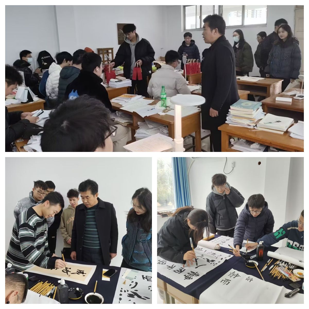 活动中,老师向同学们讲解了中国书法的文化内涵及书写的注意事项,引领同学们学习书法结构,介绍书法作品形式的重要性,现场指导学生们进行实践。经过学习,一幅幅书法作品被创作出来,学生们在卡片上写下自己对考研学长学姐的祝福。随后师生一行前往东十一学生宿舍和自习室,为考研学子送去书法作品和暖心小礼品,祝愿考研学子泼墨挥洒,描绘锦绣前程,克服考研焦虑,坚定不移奔向梦校。“没想到这字竟然是学弟学妹们亲手写的,真的太暖心了!感谢学院和老师们的关心,我们一定坚持到最后”,机工202班刘金鑫说道。