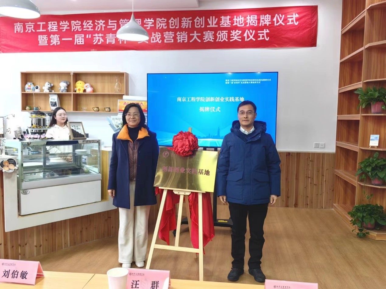为培育学生创新创业精神,为在校大学生创新创业提供便利条件和良好环境,12月27日,经济与管理学院在至诚苑·经管楼A103举行大学生创新创业基地揭牌仪式暨经济与管理学院第一届“苏青杯”实战营销大赛颁奖仪式。校党委常委、副校长汪群,校党委常委、人事处处长张焱,共青团江苏省委高校工作部副部长刘业峰,共青团江苏省委副书记(兼职)、南京苏青科技集团有限公司董事长刘伯敏以及校团委副书记(主持工作)李华冠,经济与管理学院党委书记罗俊、院长张泳出席仪式,学院学工办全体教师、苏青杯实战营销大赛参赛学生代表逾50人参加本次活动。