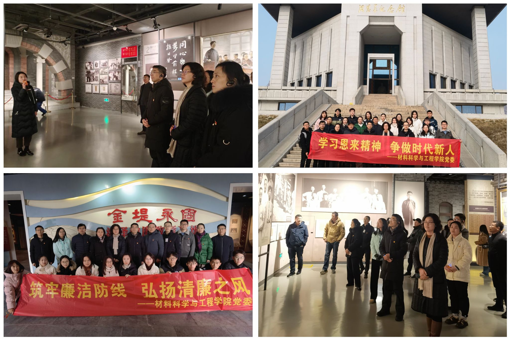 为深入学习贯彻习近平新时代中国特色社会主义思想和党的二十大、学校第四次党代会精神,推进学院廉洁文化建设,加强新形势下师生党员的党性教育,1月3日,材料科学与工程学院党政领导班子成员、党委委员、党支部书记和学生党员代表赴周恩来纪念馆、洪泽湖“金堤永固”廉政教育基地开展“筑牢廉洁防线,弘扬清廉之风”主题教育活动。