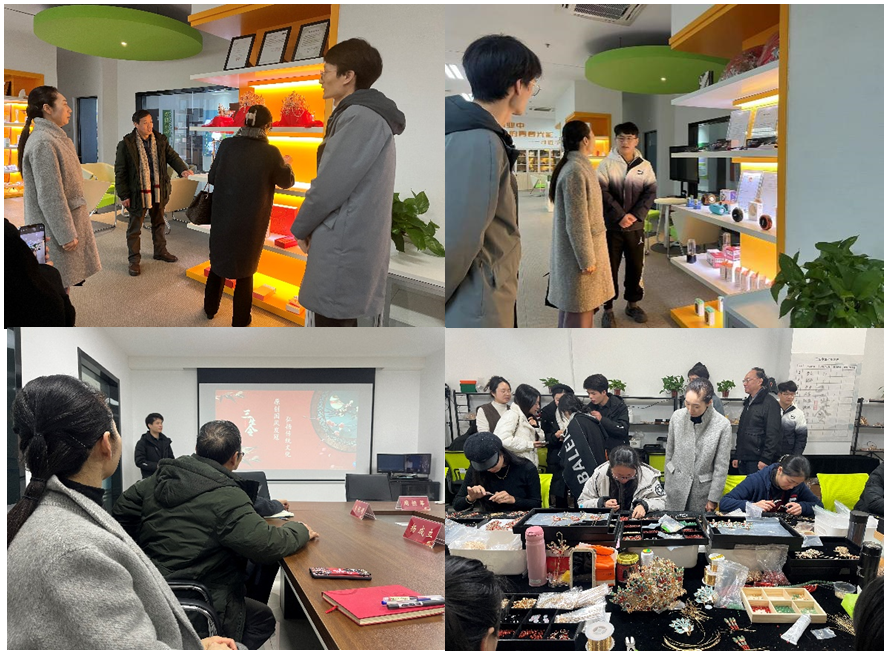 1月17日下午,在学校学工处创业园管理办公室的组织下,艺术与设计学院党委副书记(主持工作)王雪飞带队赴金陵科技学院调研“三生令”原创国风发冠文化创业项目,学院部分领导、工艺美术系主任、专业教师参加活动。