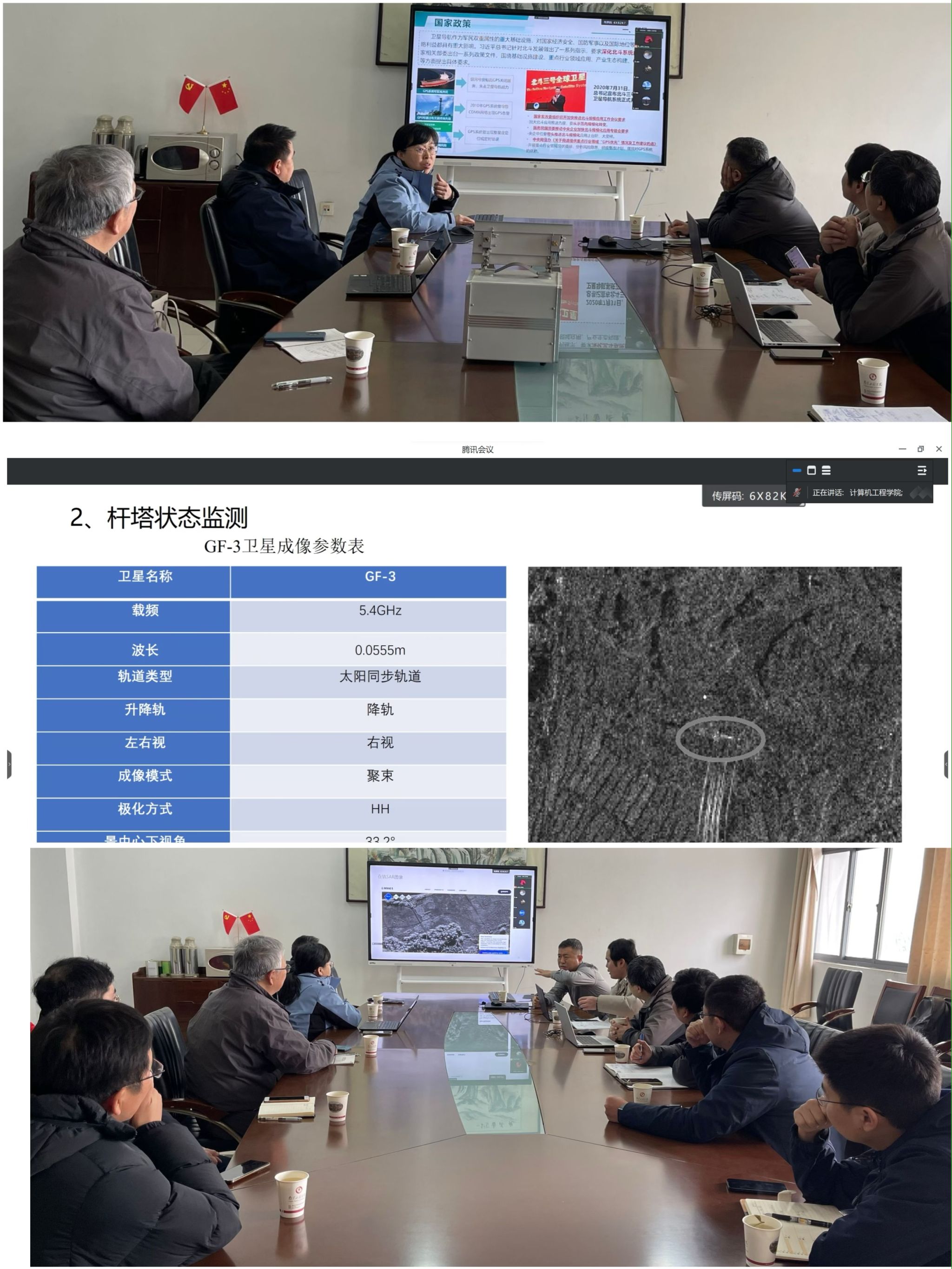 交流会上,阚建飞介绍了学院学科发展特色以及近年来产学研工作成果,他表示遥感、北斗与通信技术方面的应用与学校相关院系的学科与专业高度契合,可以整合资源、积聚力量与江苏电网开展深度合作,在行业应用研究、成果转化、人才培养、学生就业等方面,紧密贴合企业需求,实现校企合作实落地。郭雅娟详细讲解了北斗/GNSS在新型电力系统应用建设的发展现状、业务范围及发展前景,着重介绍了电力北斗应用基础设施、电力北斗定位应用、电力北斗应用输电地灾监测和规模化应用建设取得的科学技术成果。能源研究院于海锋教授详细介绍了基于卫星InSAR技术的电网应用,展示了卫星InSAR在电力企业以往的合作项目和成果。计算机工程学院郑翔天博士围绕“融合北斗/GNSS和地基SAR变形监测技术思考”汇报了学院在崩滑灾害应急监测领域应用成果。