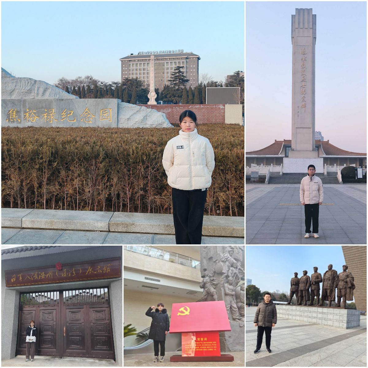 寻访红色足迹,接受精神洗礼。朱鹏达同学来到了连云港革命纪念馆,通过线上+线下的模式,带领班级同学们共同回顾连云港地区革命斗争的峥嵘岁月,深入了解了连云港地区的革命历史和革命先辈的不朽业绩。庞瑞敏同学家乡在山东淄博,从小就是听着焦裕禄的生平事迹和焦裕禄精神长大的,她前往焦裕禄纪念馆进行参观学习,更加深刻的体会到了当今幸福、稳定、平安生活的来之不易。嵇航航同学走进江苏淮安涟水战役纪念馆,参观结束后他在留言簿上写道“强国有我”,表示自己将不断提升专业知识和技能,为构筑美丽中国梦而奋斗。“人民英雄青史颂,渡江精神新辈弘!”孙弘毅同学说已经多次参观合肥渡江战役纪念馆,从五角星胜利塔、总前委群像到纪念馆,在这里能够深入了解渡江战役这段历史征程,重温渡江战役这段激荡人心的热血岁月,感受永垂不朽的渡江精神。郑瑞洁同学前往日军入侵温州(乐清)展示馆,通过观看展馆陈列的革命老照片、书信文物和聆听革命先烈的红色故事,感受日军侵占期间给温州人民带来的巨大损失和严重伤害,感受到革命先烈在枪林弹雨中英勇奋战的场景,深刻学习了温州艰苦卓绝的光辉革命历程。吴志洋同学来到南京总统府,参观了总统府中的历史文物、还原物件,以及大堂之上孙中山手书的“天下为公”的牌匾,感受到了中国共产党、国民党和其他民主党派为拯救中国人民,在南京这座古城中付出的努力。