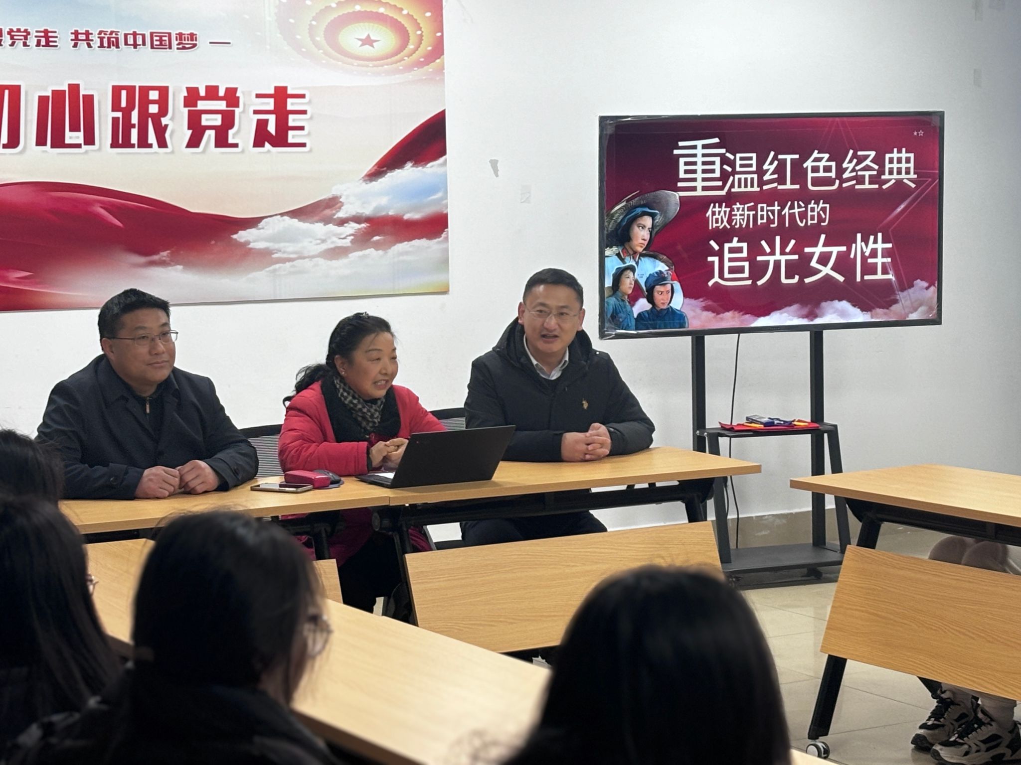3月7日,工业中心结合红色精神传承、中华优秀传统等主题开展了“重温红色经典,做新时代的追光女性”女生教育专项活动,组织女同学代表在北区一站式社区观看了红色党史故事电影《红色娘子军》,并邀请关工委周凌凤老师为同学们解读红色精神。中心党委书记张亮、党委副书记石贵舟、学工办老师以及各班级女生代表50多人参加了活动。