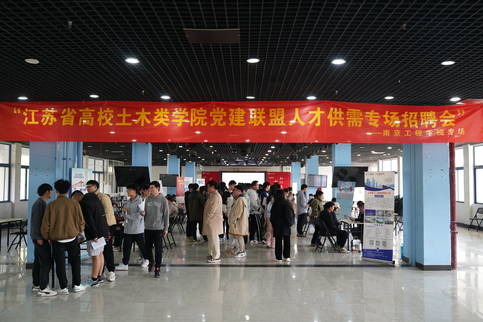 构建“党建+共建”校企协同育人平台。开展“江苏省高校土木类学院党建联盟人才供需专场招聘会”15vip太阳集团官网专场招聘活动,学院党政负责人深入活动现场,与多个用人单位进行了深入交流,促进校企双方在专业实习、人才培养、项目合作、实践服务、科创比赛、就业招聘等方面开展深度合作。此次招聘会的招聘岗位涵盖土木工程、建造管理、交通土建、建筑工程、建筑学、城市地下空间工程、测绘工程、安全工程、工程管理、工程造价、财务管理、会计学、人力资源管理等13个专业,为近80名党员、学生提供实习实训岗位。同学们纷纷驻足自己感兴趣的招聘单位,就招聘岗位的工作内容、发展空间、薪资待遇等问题进行详细咨询。用人单位面对毕业生的咨询耐心解答,并就单位需要招聘的岗位、用人条件、福利待遇等方面内容向前来咨询的毕业生进行详细讲解。