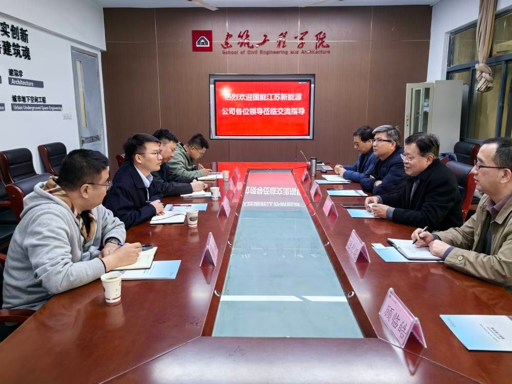 3月26日,国家能源江苏新能源公司副总经理胡国建一行4人来建筑工程学院走访调研,建筑工程学院党委书记陆彤焜、院长张文福率骨干教师接待了胡国建一行。后勤保障处副处长陆兴华应邀参加了本次活动。