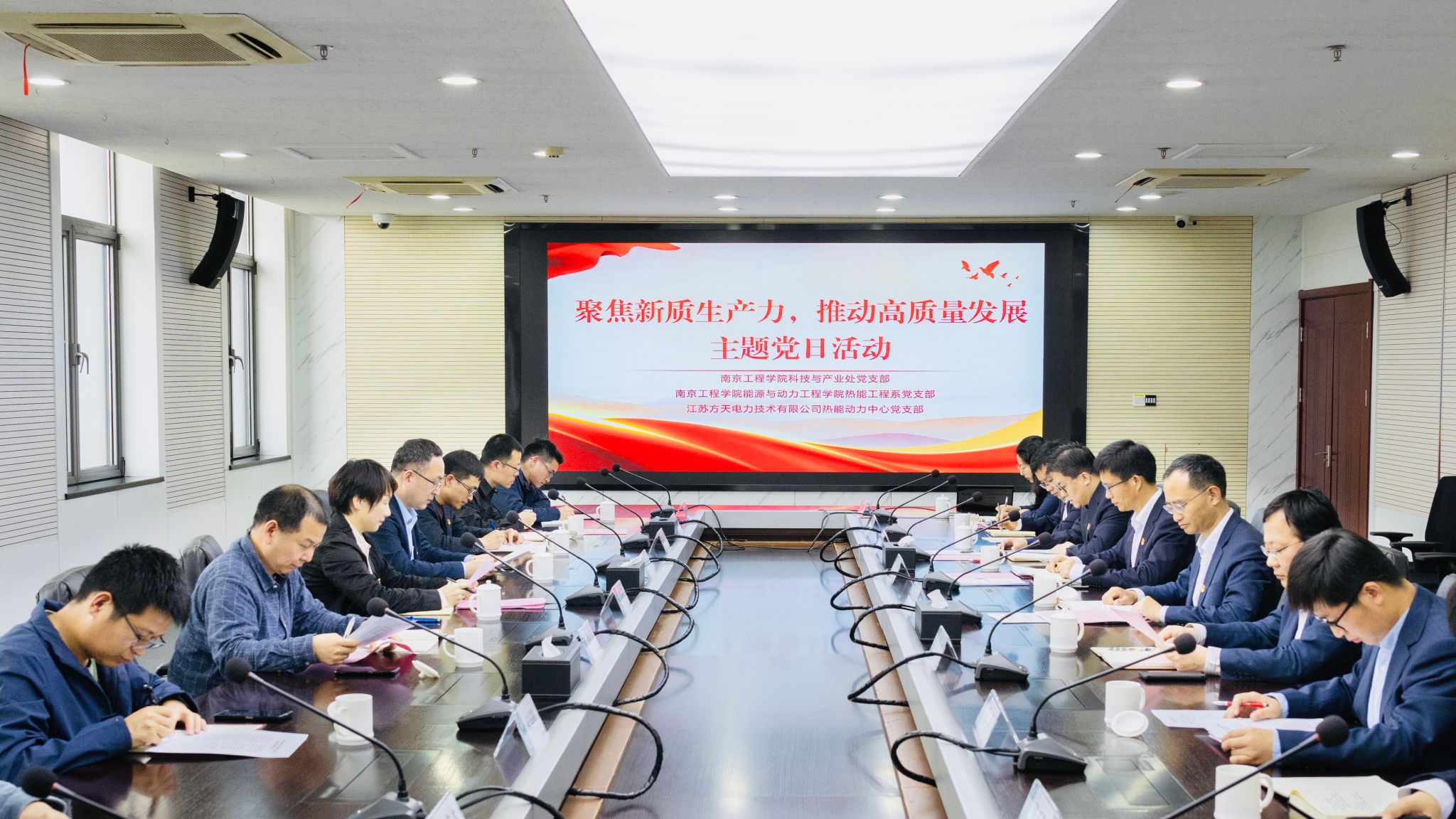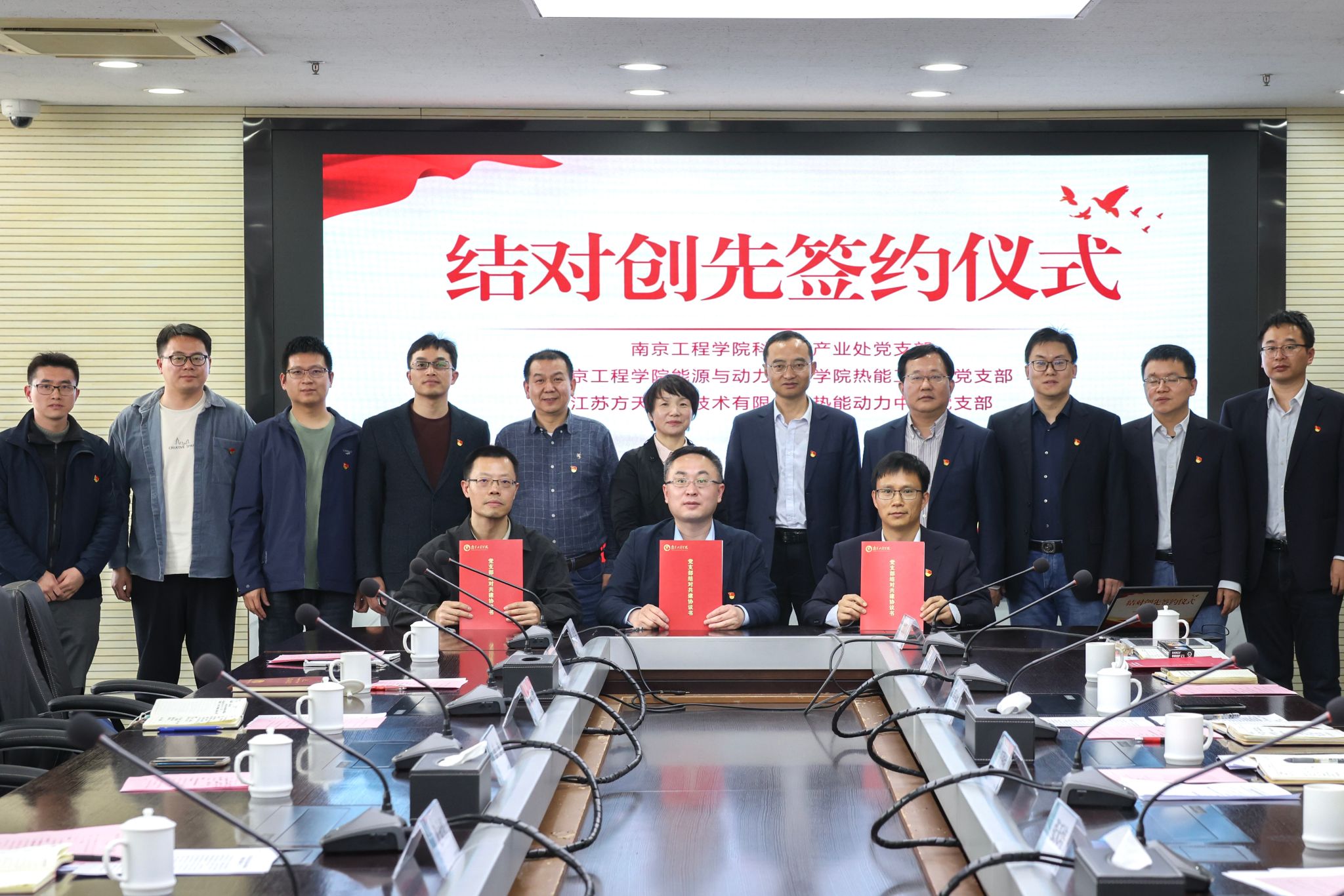 随后,科技与产业处党支部书记韩冰、能源与动力工程学院热能工程系党支部书记叶丹、江苏方天电力技术有限公司热能动力中心党支部于国强介绍了各自支部的基本情况,并在与会人员的见证下,现场签署了《结对共建协议书》。