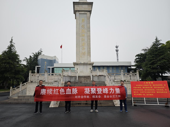 为进一步深化弘扬革命传统,传承红色基因,4月30日,机关党委对外合作处、校友会、基金会党支部赴扬州市江都区开展“赓续红色血脉,凝聚登峰力量”主题党日活动。