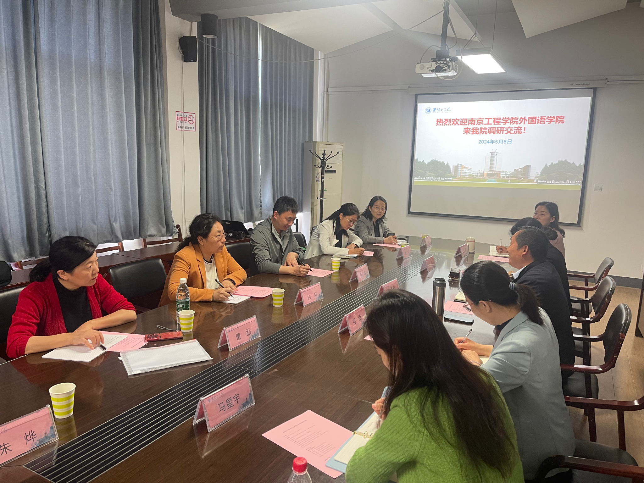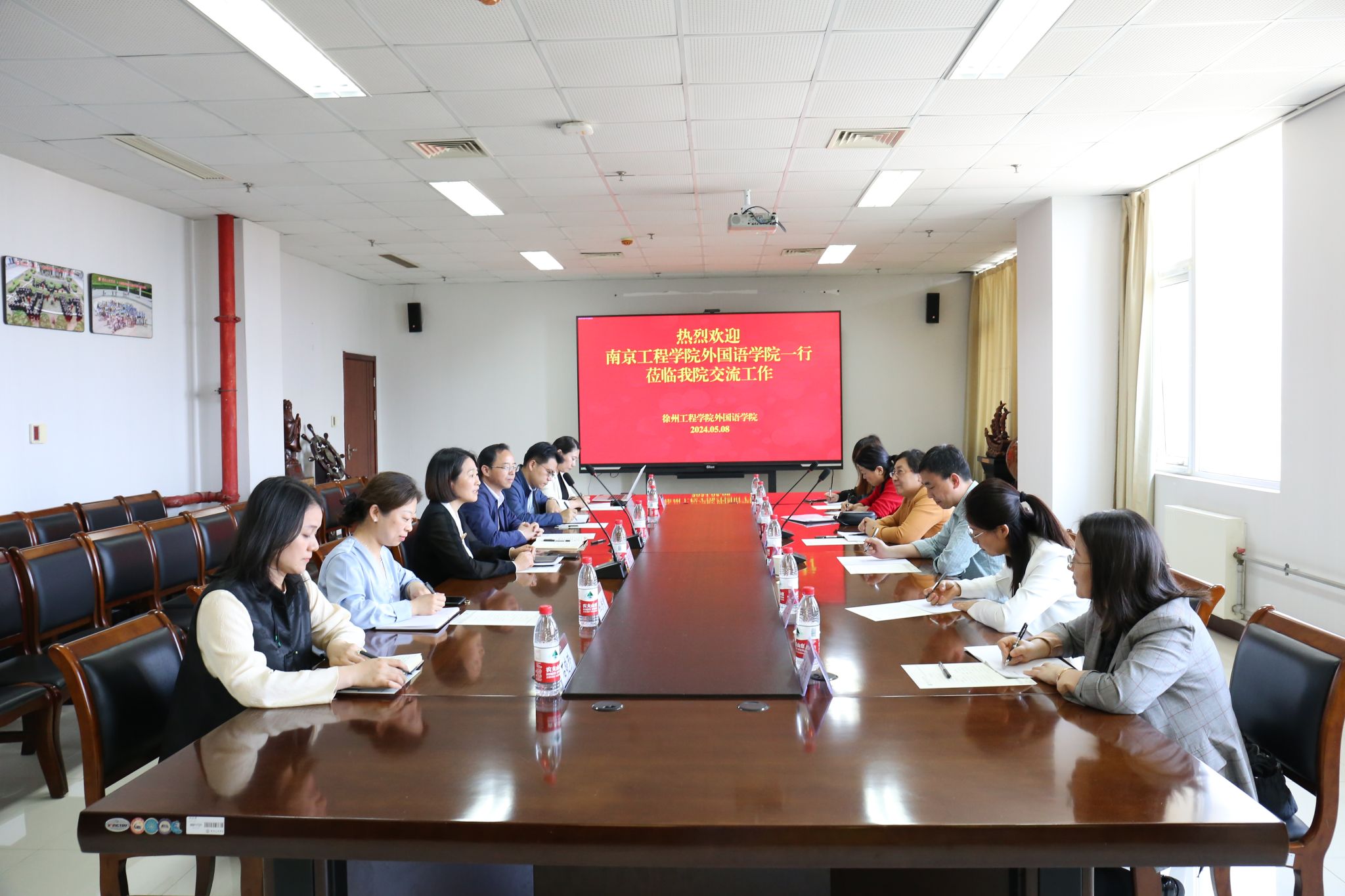 为贯彻落实学校第四次党代会精神,推进实施一流应用型大学建设“登峰计划”,加快提升学院育人质量,5月8日,外国语学院党总支书记徐艳、院长袁小明带队赴淮阴工学院、徐州工程学院就英语专业建设、大学外语教学课程改革、师资队伍建设、科研课题申报、党建工作等方面调研学习,充分借鉴兄弟院校的建设经验。