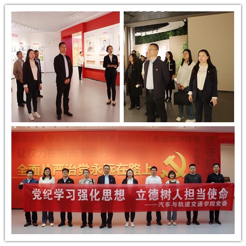 为深学笃行习近平总书记关于党的自我革命的重要思想,高质量开展党纪学习教育,5月11日下午,学校党委常委、副校长陆华良带领汽车与轨道交通学院党政领导班子、党委委员、党支部书记一行走进常州监察文化馆开展现场学习实践。