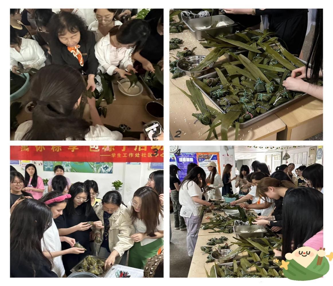 活动伊始,在老师和阿姨的指导下,学生们动手包起了粽子,虽然手法略显生疏,但充满了热情和创意。汪群在现场引导大家要在活动中深刻感受中国传统文化魅力,不断增强文化自信、厚植爱国情怀。等粽子煮熟上桌,同学们迫不及待地品尝起自己亲手包的粽子,在欢声笑语和软糯粽香中感受节日的氛围和体验。大家还利用剩余的粽叶晒干包裹草药制成了香囊,即实现了材料节约,又驱赶了蚊虫。“和老师一起包粽子,缓解了我备战期末的紧张感,希望今后多参加类似活动,更多地传承和弘扬我们的优秀传统文化。”计算机221陶晰岚同学感慨道。