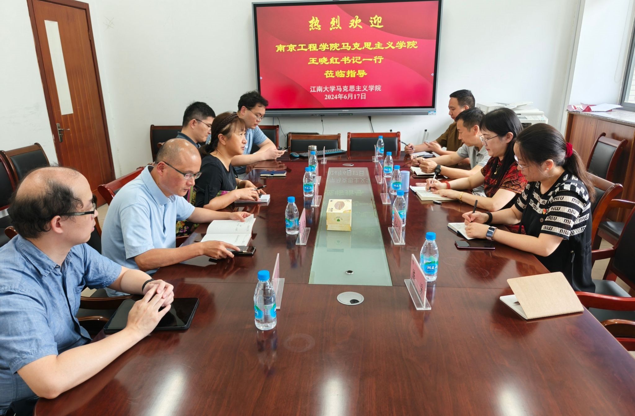 在无锡物联网创新促进中心,学院一行针对物联网概念、智慧工业、智慧金融、智慧医疗等领域进行了细致的了解,为学院未来讲好新质生产力主题、党建融合、服务地方社会发展等积累了丰富的实践资料。在江南大学马克思主义学院,该院相关负责人介绍了学院的基本情况、绩效考核和分配办法,推荐了该院的特色品牌“宝哥讲思政”,讲述了该院在申报江苏省示范性马院、科研项目申报与科研队伍建设、教学推进等主动有益经验。双方围绕教学、科研、人才培养、学科建设等方面的共性问题展开讨论。