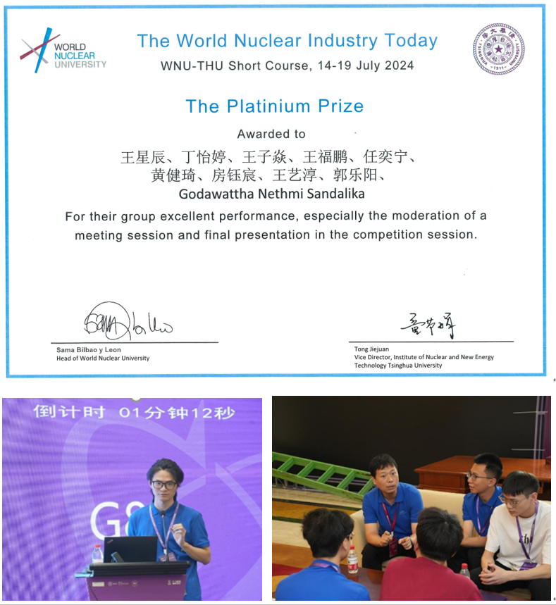 7月14日-19日,2024年世界核大学清华周活动在中核集团三门核电有限公司举办,能源与动力工程学院选派核工程211房钰宸、张骏枫、詹咸鸿三位同学参加活动,并获得铂金奖1项,金奖1项,铜奖1项的优异成绩。