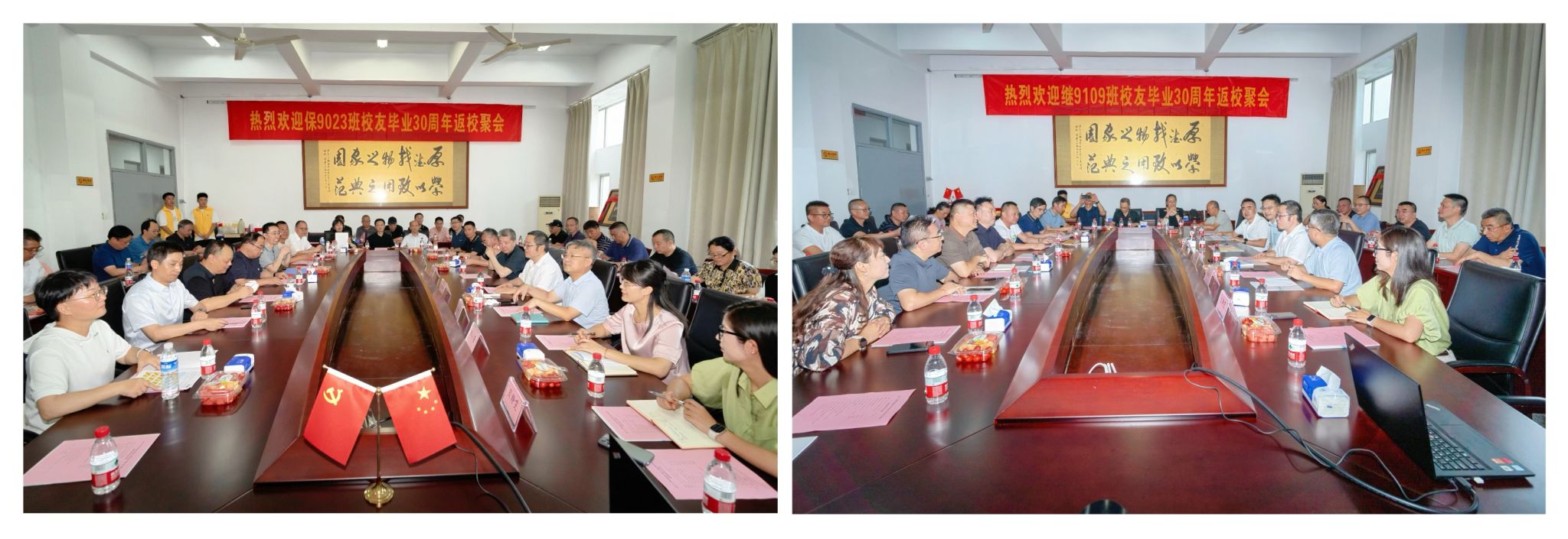 校友师生们深情回顾了求学往事,畅谈了成长和工作经历,表达了对学校培养和热情接待的感谢。“转眼为班级服务了30年,记忆中我们班连续三年校体育比赛第一名。”保9023班班长吴少飚自豪地谈道。“我们班是一个团结奋进的集体,‘五年一聚会’是我们的共识。34年前,缘起电力,梦想启航;今天,再聚母校,情深依旧;未来,携手并肩,继续为电力事业添砖加瓦。”保9023班返校活动策划组毛俊杰深情感慨。“到哪里都有亲人在,到哪里都有校友情。”继9109班班长、宣城校友分会会长段朝华的肺腑发言让在场校友为之动容。继9109班陈晓现场为学校一流应用型大学建设“登峰计划”建言献策,并向母校汇报“在黔校友会”的筹备情况。两场座谈会现场温馨融洽活跃,两个班级的老师也与校友们抚今思夕、自由畅谈,共同追忆青葱岁月,祝福美好未来。