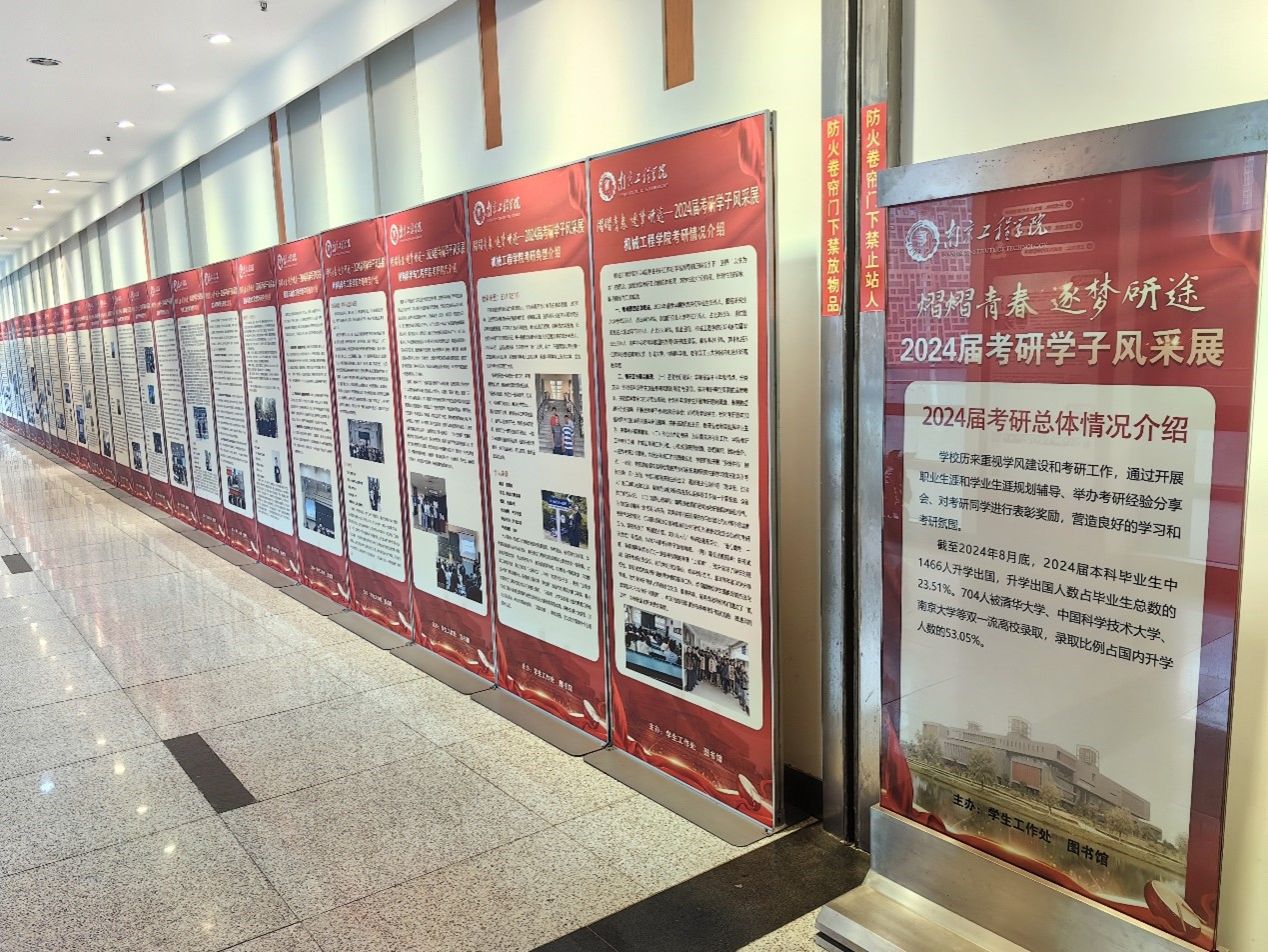 熠熠青春绽光彩,逐梦研途启新程。近日,学生工作处、图书馆、档案馆于逸夫图书信息中心文化长廊联合举办“2024届考研学子风采展”,展览以图文并茂的形式展现了各学院(中心)的考研经验和喜人成果,营造了浓厚的学习氛围。