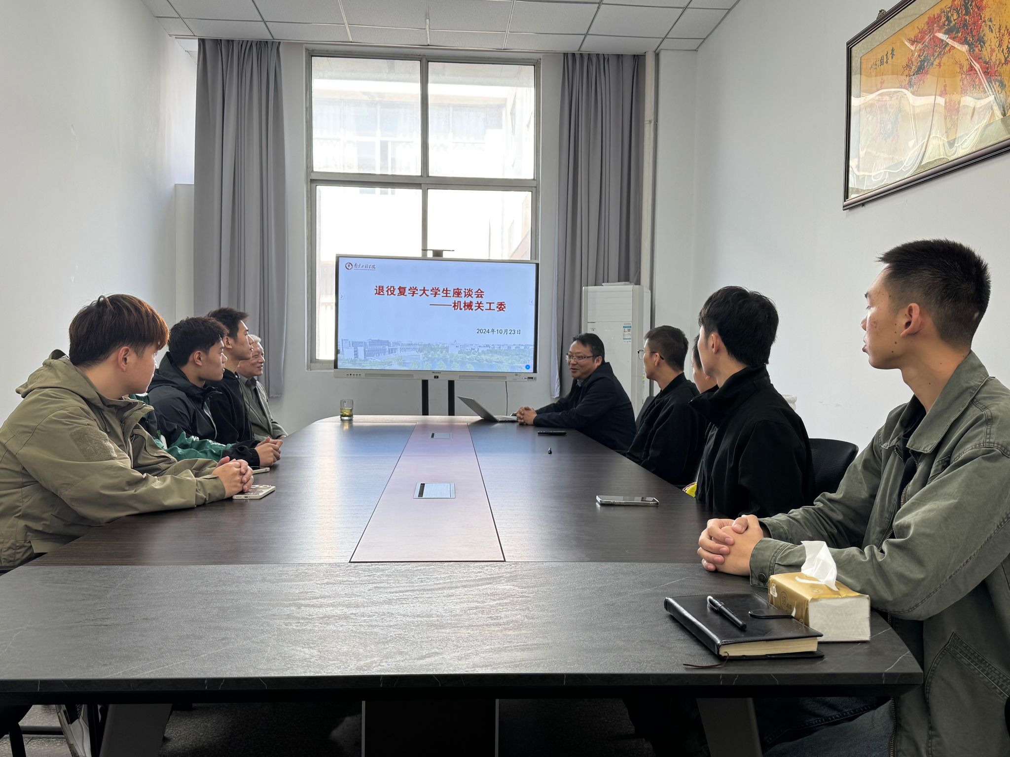 10月23日,机械工程学院关工委在工程实践中心3号楼218室开展了退役复学学生座谈会。该院党委书记刘树春、退休教师何小龙出席座谈,退役复学学生代表参会。