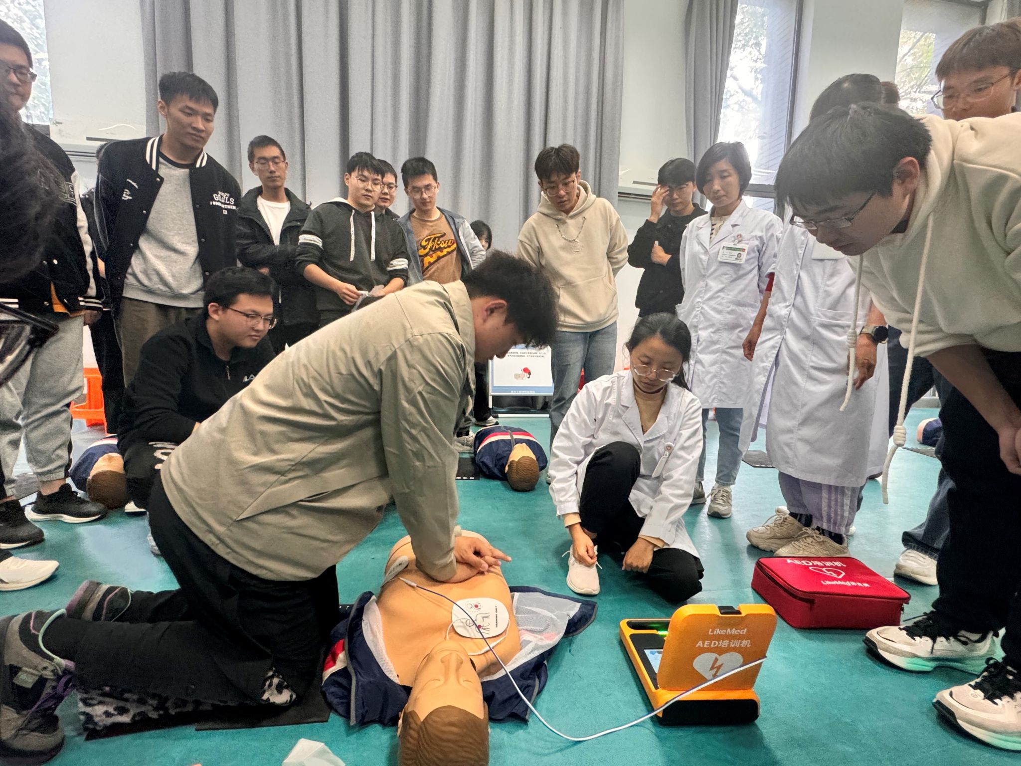 培训内容涵盖了心肺复苏术(CPR)、自动化体外除颤仪(AED)使用、气道异物梗的识别与处理等关键急救技能。培训现场,校医院党员理论讲解、现场示范以及手把手指导操作,研究生院师生党员认真聆听、实训操作、严格考核,27名党员取得CPR+AED证书,为健康校园建设注入新活力。今后,双方将会持续组织开展党建共建活动,进一步加强党员教育,增进支部凝聚力,发挥基层党组织堡垒作用。