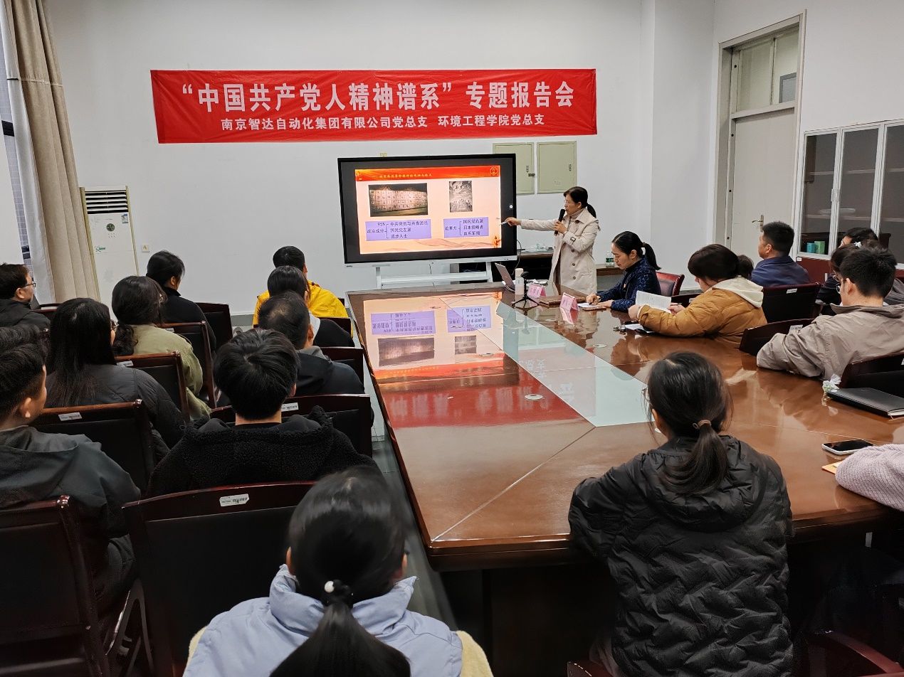 为深入实施"时代新人铸魂工程",学思践悟中国共产党人精神谱系,11月20日下午,环境工程学院党总支和院企共建单位南京智达自动化集团有限公司党总支在天健苑•体育中心101会议室联合举办“中国共产党人精神谱系”专题报告会,会议邀请南京市委党校党史党建教研部教授张家芳作题为《雨花英烈革命精神及其时代价值》专题报告。