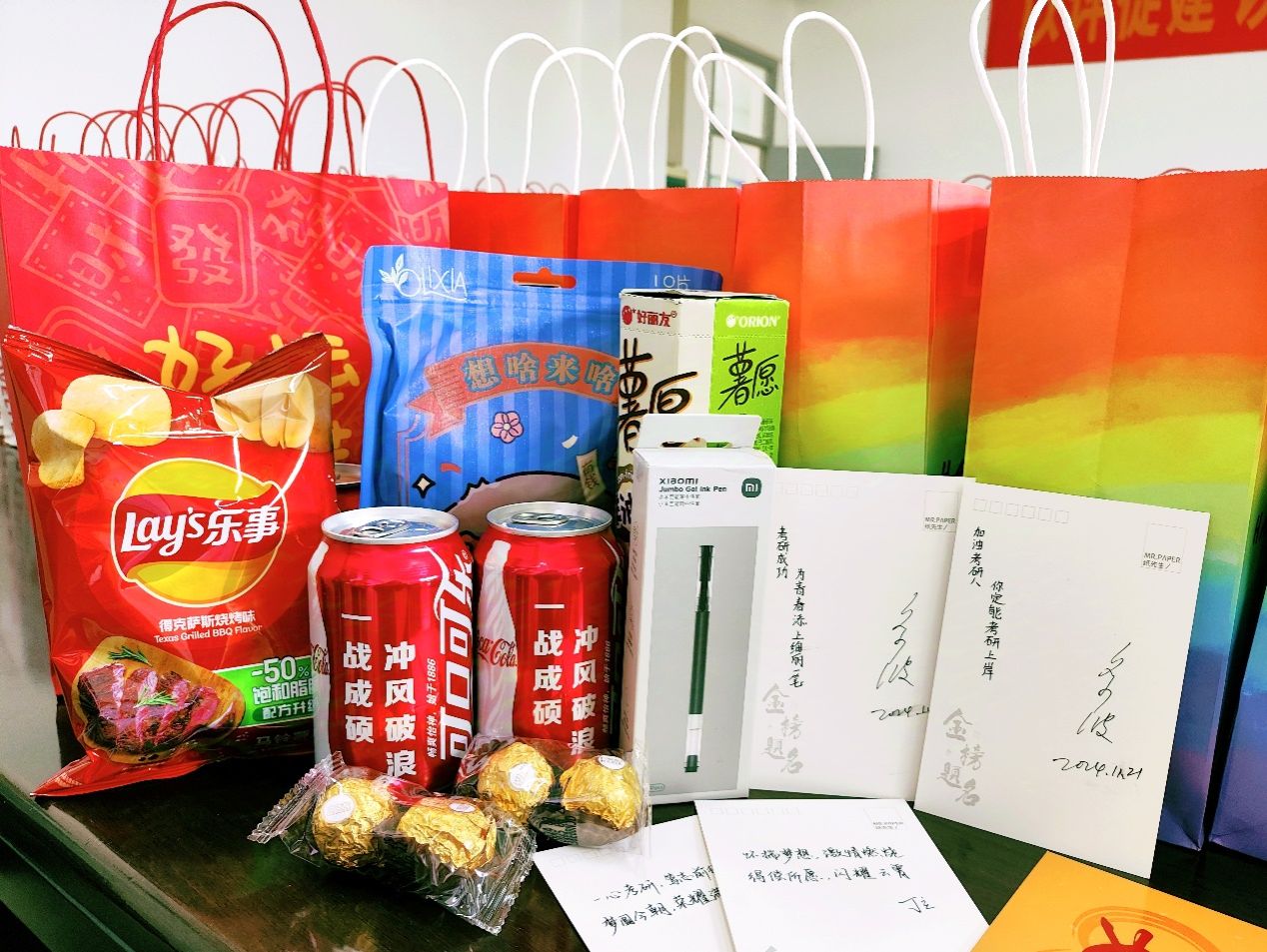学院为同学们精心准备了“好运满满”“未来可期”“逆光而行”慰问礼包,每一份慰问品都被赋予了美好的祝愿。每一份礼包中都附有班主任老师为同学们手写的考研祝福贺卡,表达了老师们对同学们最诚挚的祝愿。师生热情互动,现场气氛轻松热烈。车辆213班陆恒同学感动地说:“非常感谢学院精心准备的大礼包,让我对考研信心满满,我们将牢记老师们的殷切嘱托,认真备考,努力考出理想成绩!”