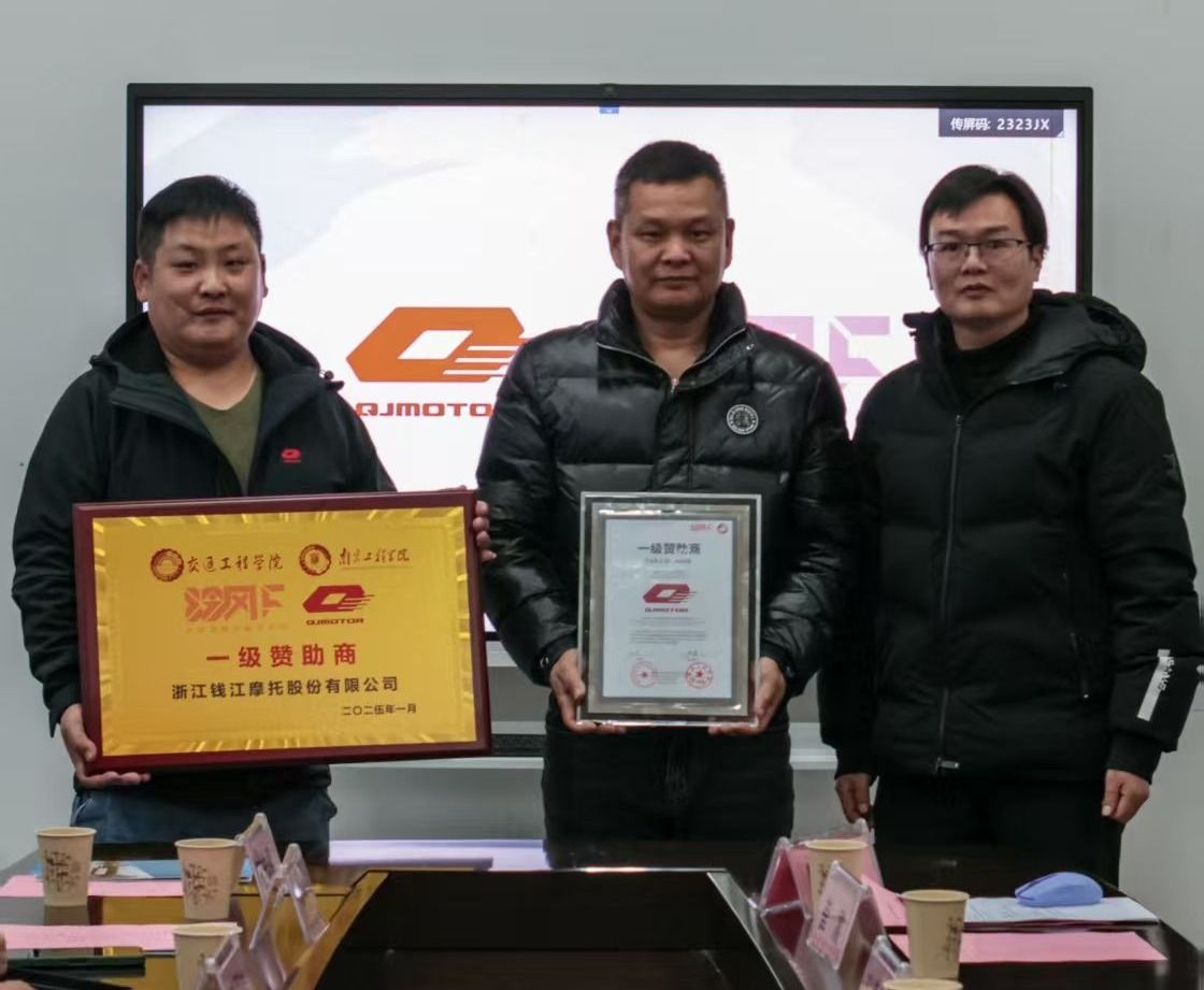 1月7日下午,交通工程学院在工程实践中心3-308会议室举行钱江摩托赞助交接仪式。钱江摩托(QJMOTOR)苏沪区总经理方双、校发展规划处处长臧利国、交通工程学院副院长(主持行政工作)张袁元、党委副书记王潘潘及骨干教师和学生代表参加了此次活动。