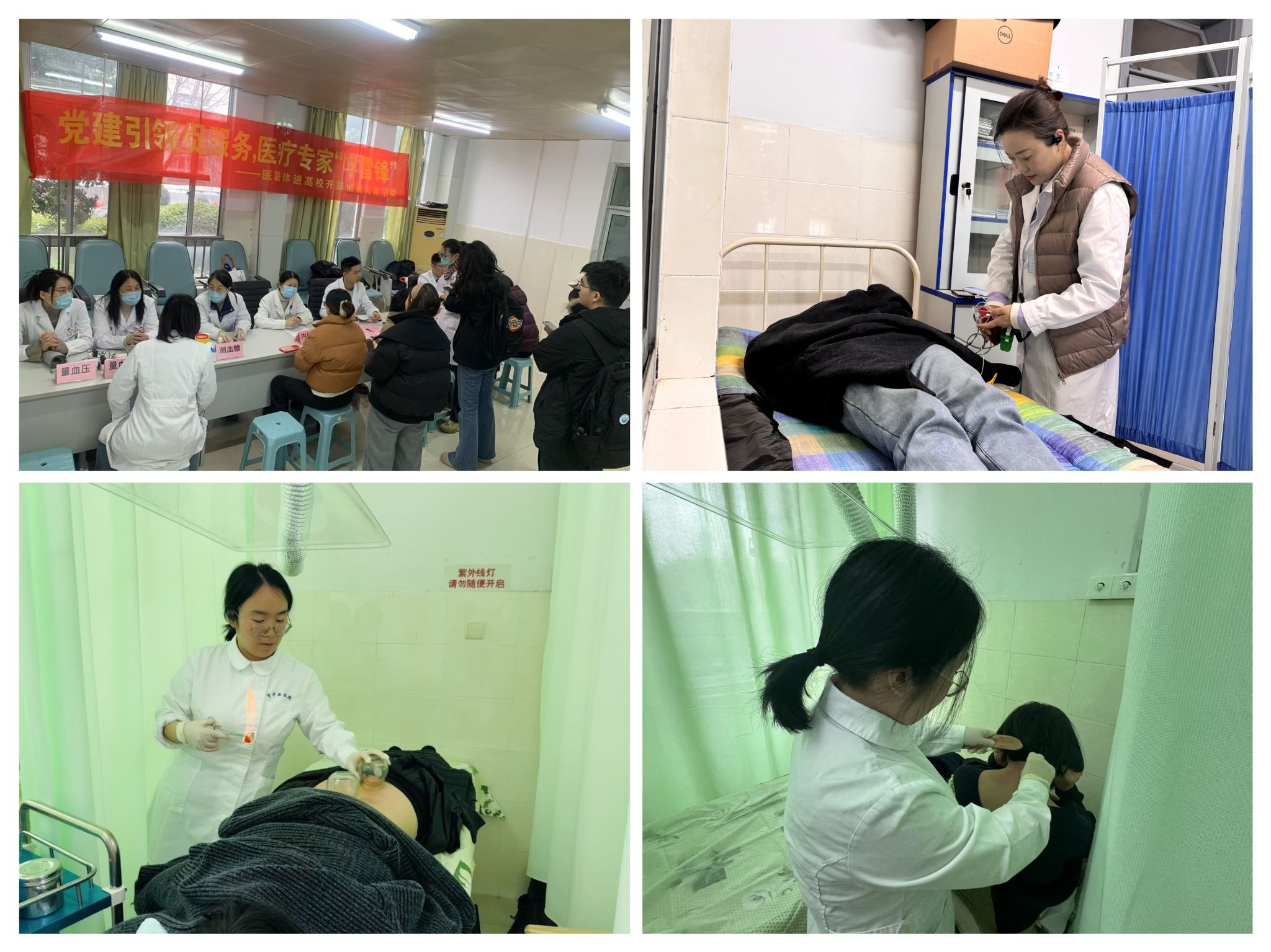 本次活动以“党建共建”为纽带,充分发挥校医院党支部与医联体单位党组织的协同作用。现场设置中医特色护理诊疗区、健康咨询区、党员志愿服务区等特色板块。活动现场,中医特色护理团队成为焦点,针对高校师生常见的颈椎病、失眠、亚健康等问题,专家们通过针灸、推拿、耳穴压豆、脉诊等传统中医技术,为参与者提供个性化调理方案。同时,现场还提供血压血糖检测、慢性病咨询等服务。