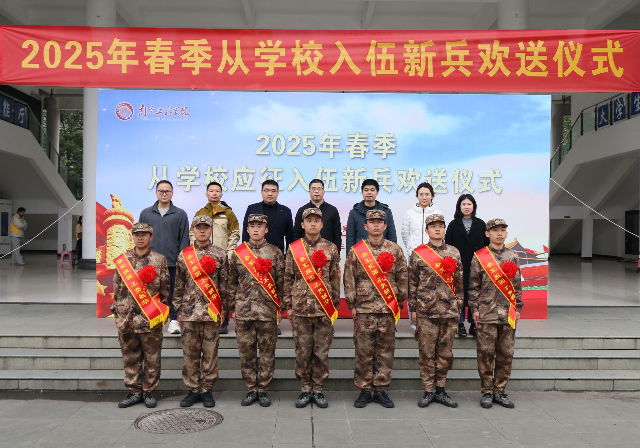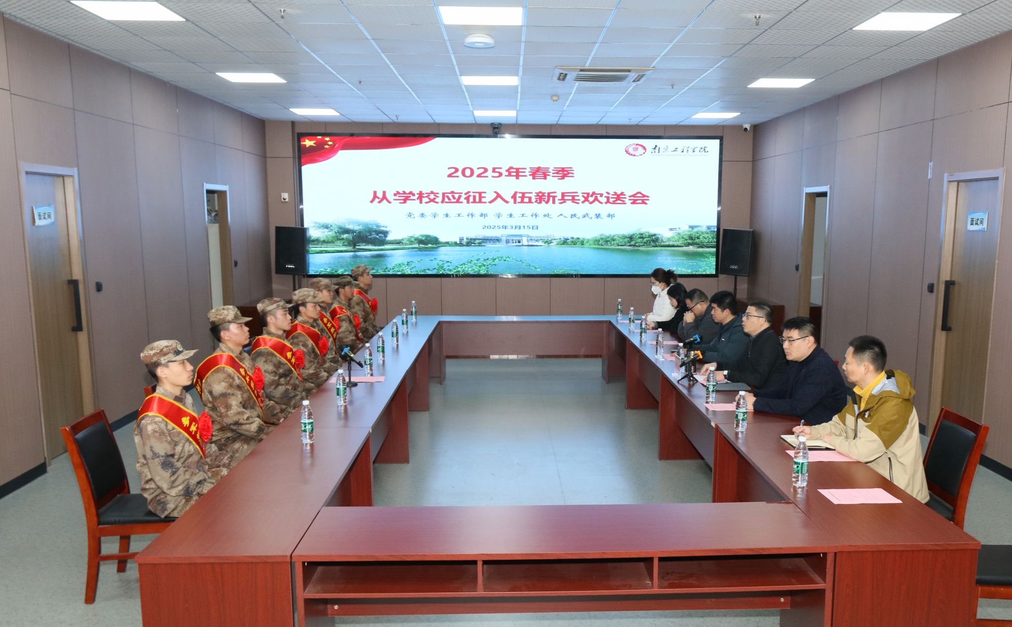 3月15日上午,人民武装部举行2025年春季从学校应征入伍新兵欢送仪式,7名新兵身着戎装、胸戴红花,踏上军营征程。从学校应征入伍新兵及其所在学院学生工作负责人、辅导员,人民武装部全体工作人员参加欢送仪式。
